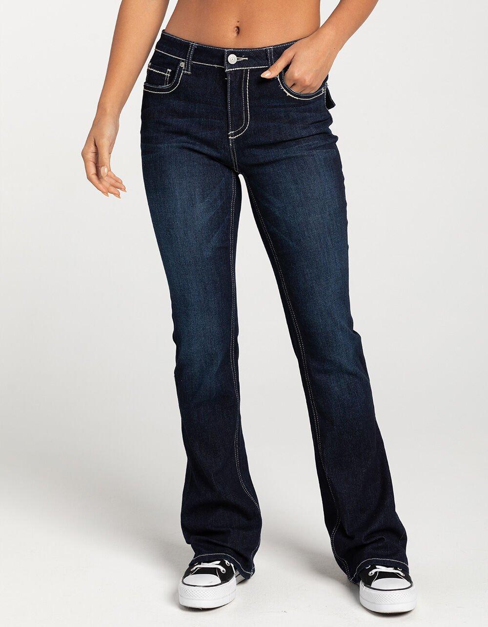 RSQ Womens Low Rise Stitch Flap Pocket Flare Jeans