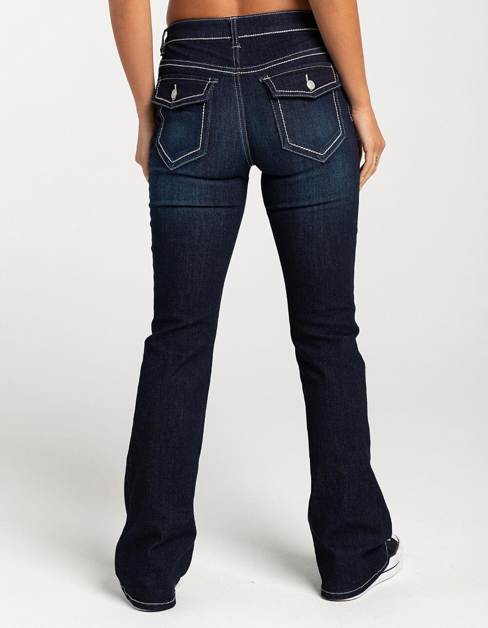 RSQ Womens Low Rise Stitch Flap Pocket Flare Jeans - Dark Wash