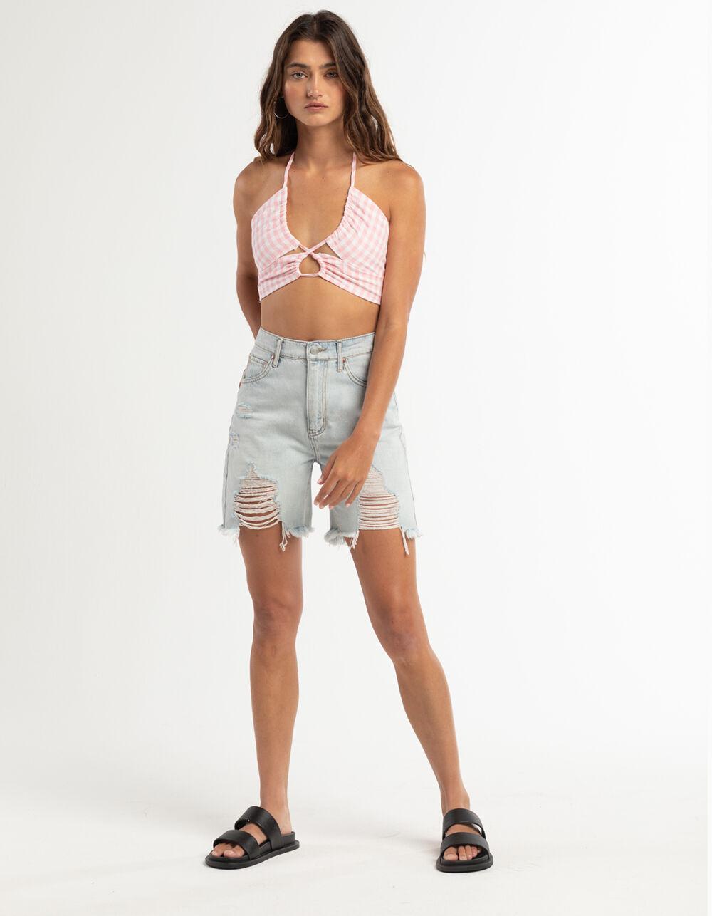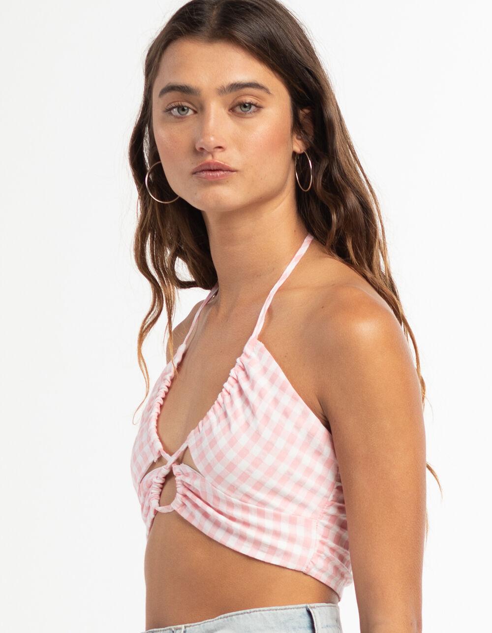 RSQ Womens Plaid Cross Front Halter Top - PINK