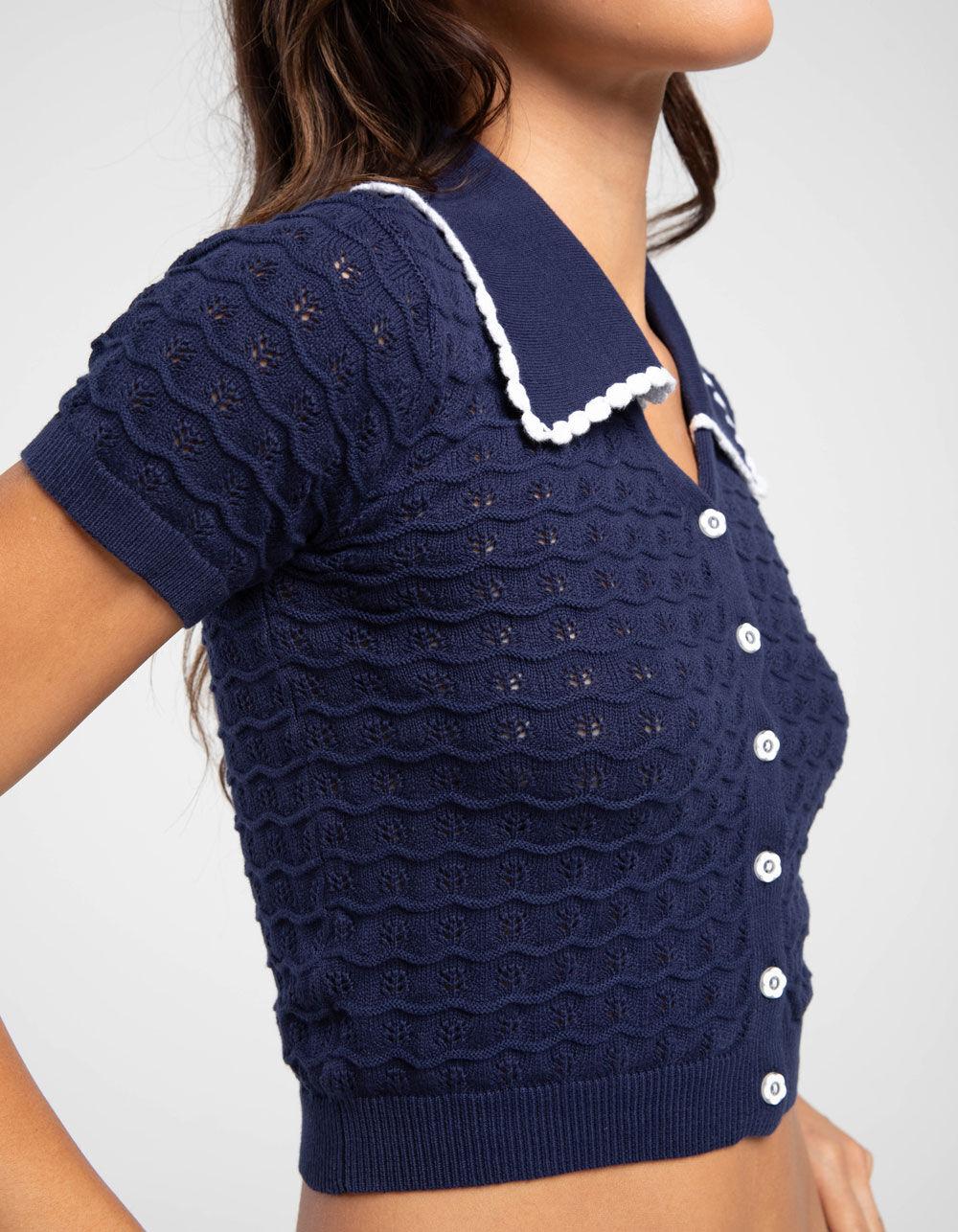 RSQ Womens Pointelle Collared Button Up Shirt - NAVY