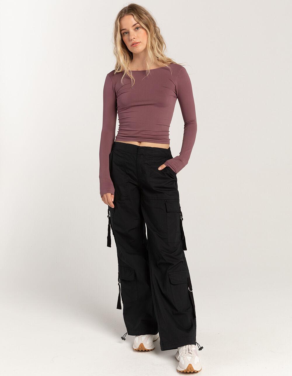 RSQ Womens Seamless Open Back Long Sleeve Tee - PLUM