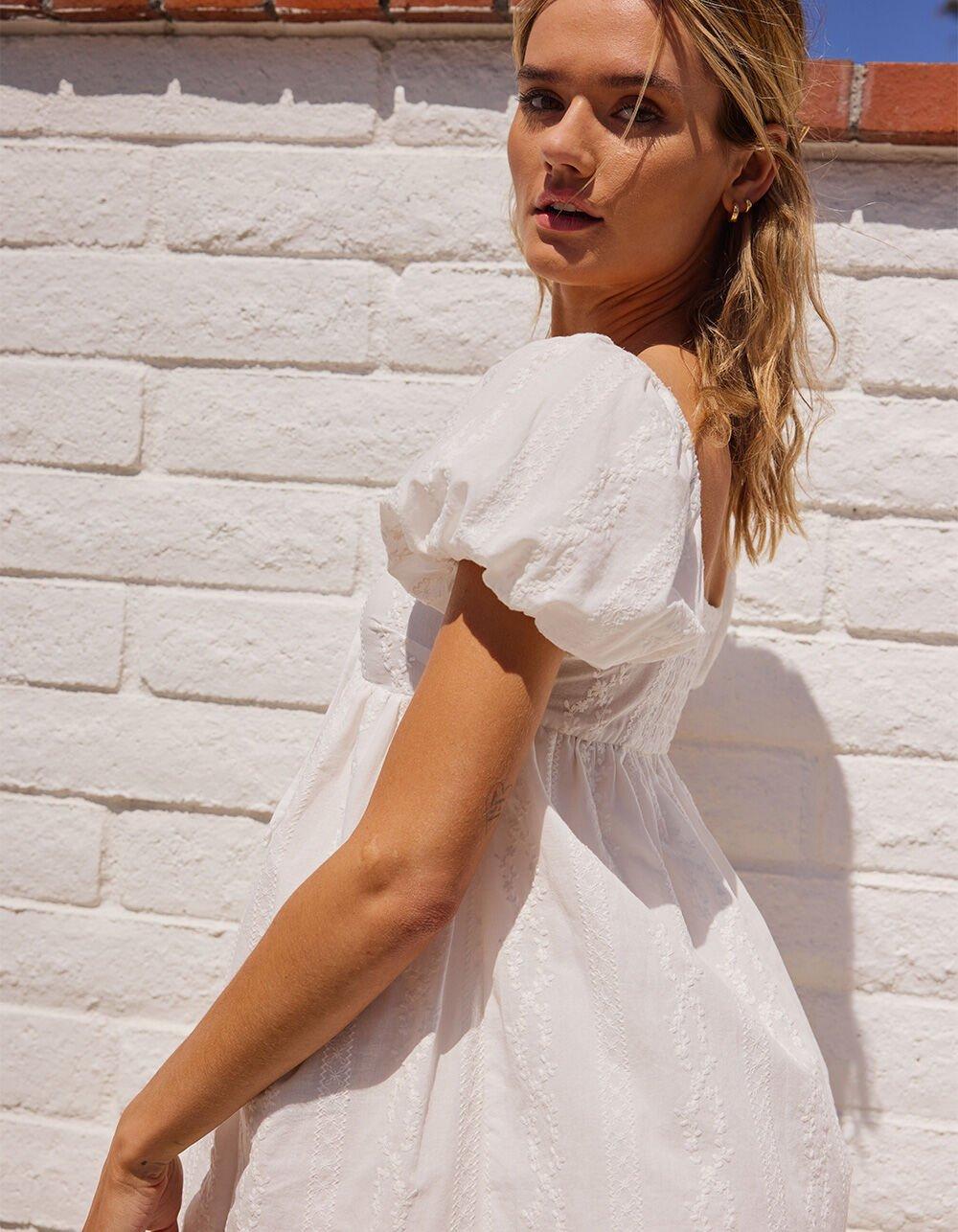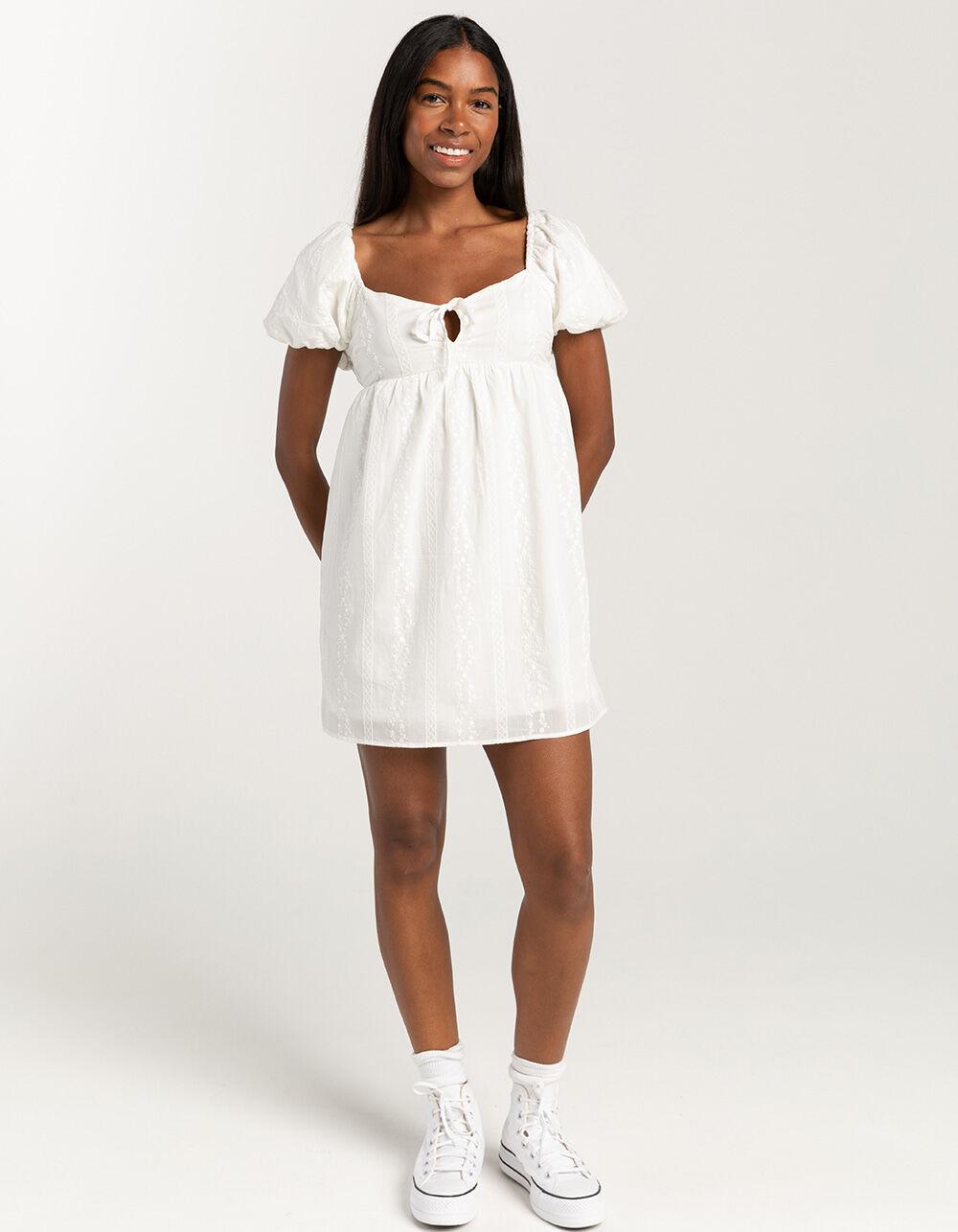 RSQ Womens Tie Front Embroidered Babydoll Dress - WHITE