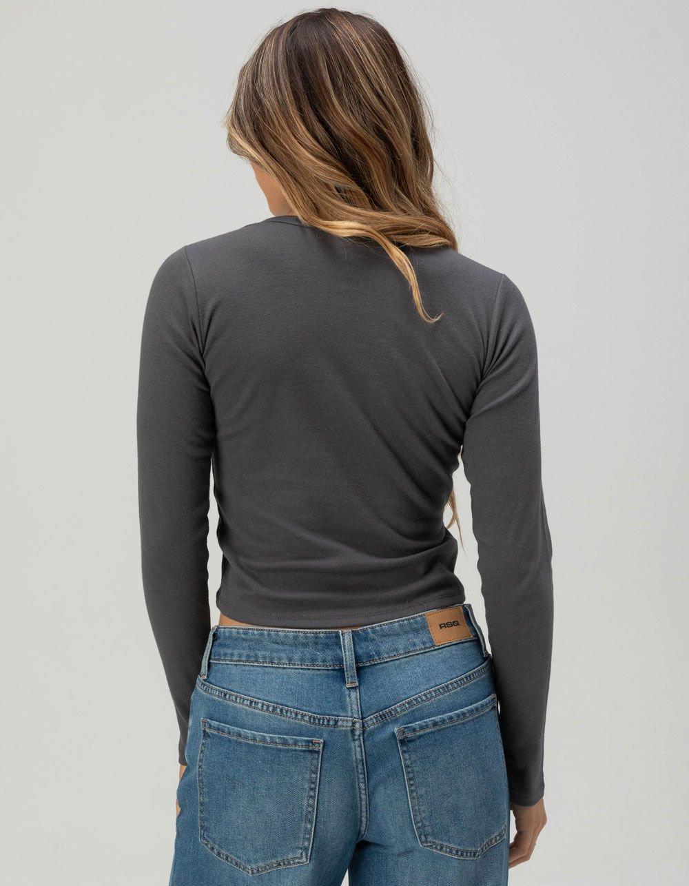 RSQ x Peanuts Snoopy Bow Womens Long Baby Sleeve Tee - GRAY