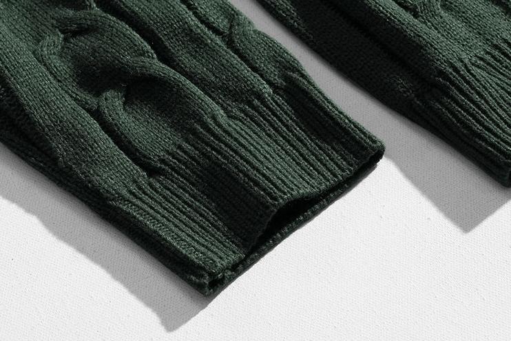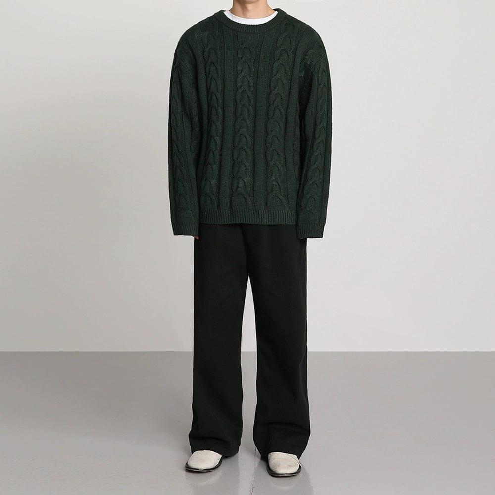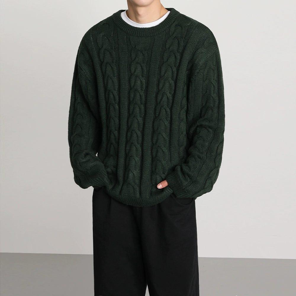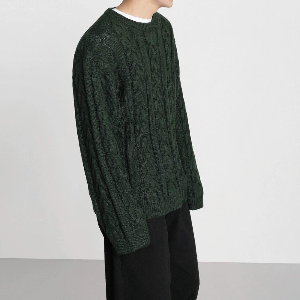 - DARK GREEN- Twisted knit- Crewneck pullover