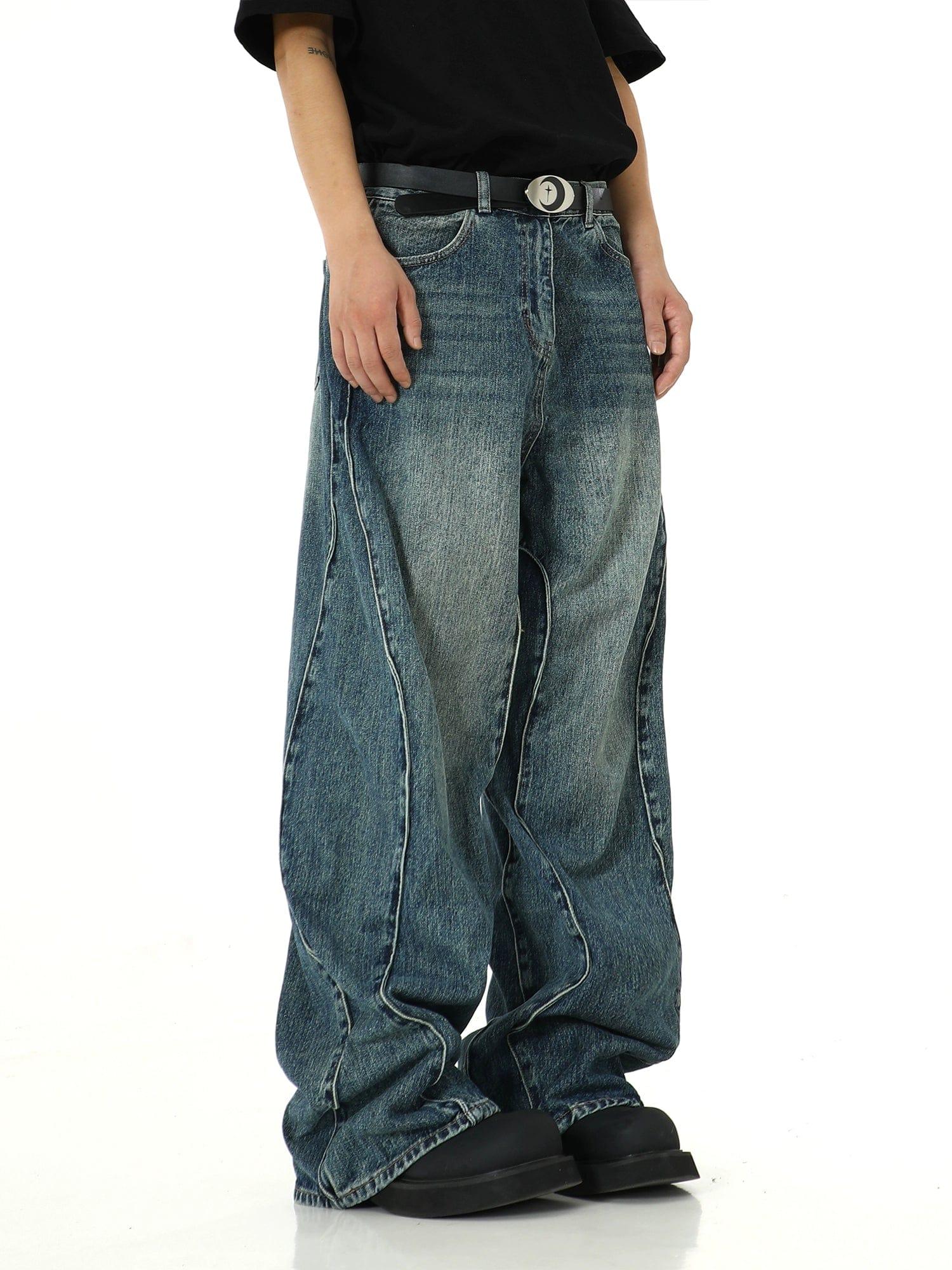 RT No. 11269 RECONSTRUCTED BAGGY STRAIGHT DENIM JEANS