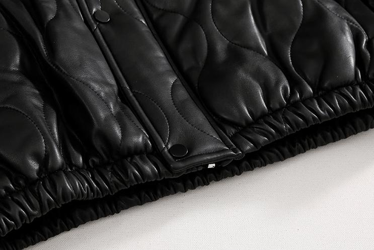 - BLACK- Pattern style- Stand collar- PU LEATHER- Zip-up / button-up