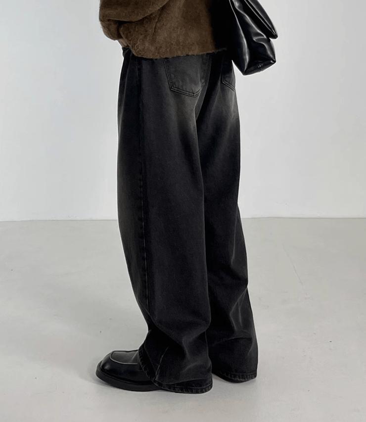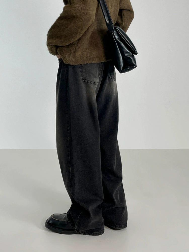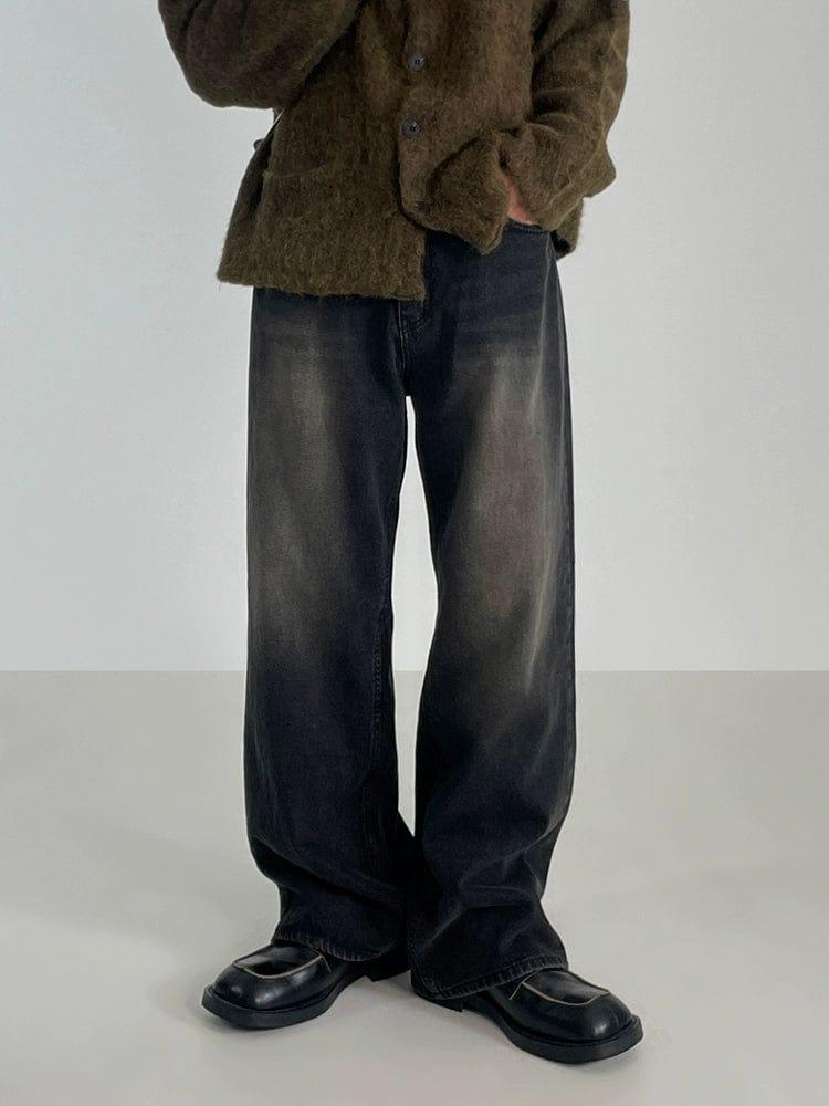 - WASHED BLACK- Wide straight fit- Denim- Drape style