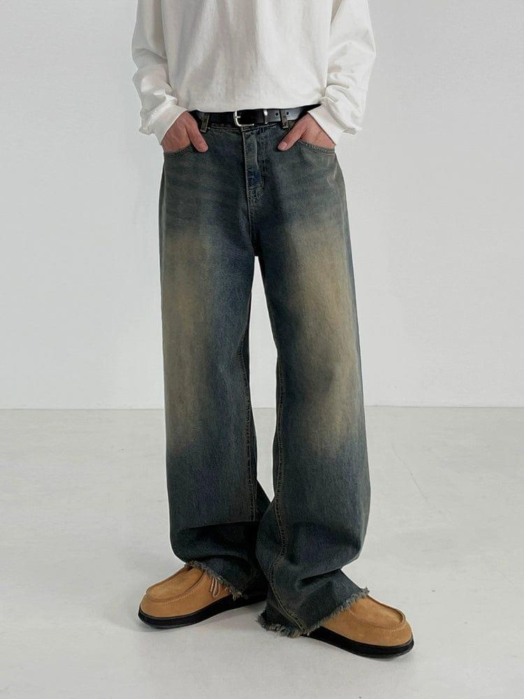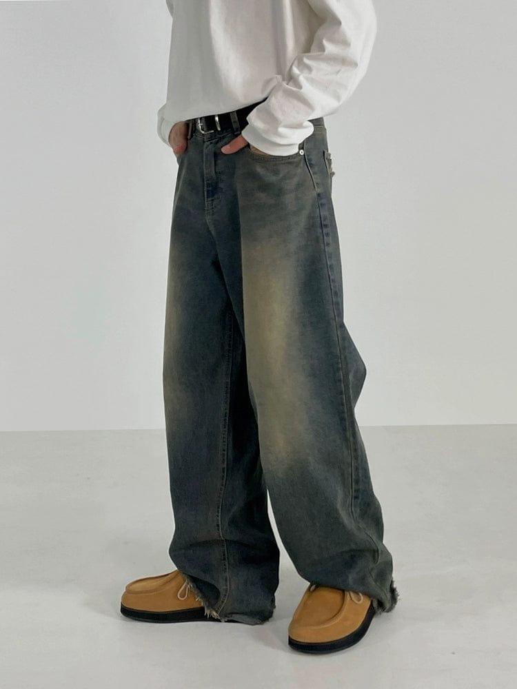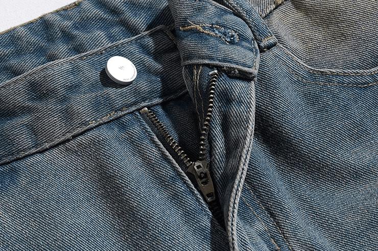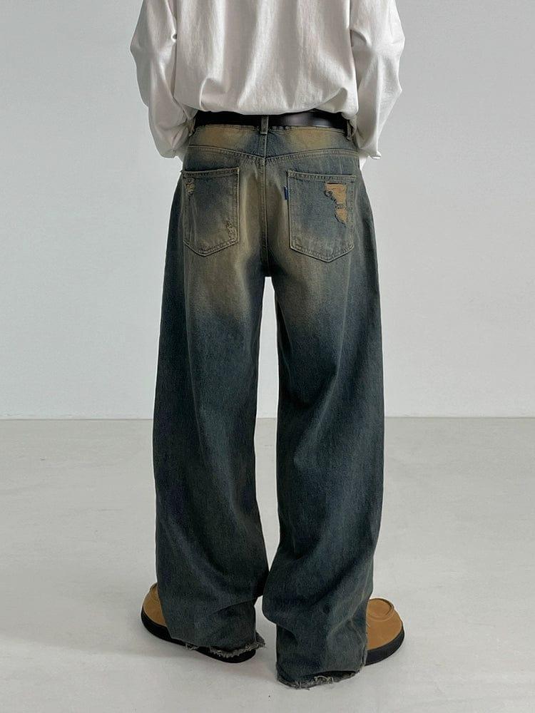 - WASHED BLUE- Denim - Straight wide fit- Distressed- Cotton 68%- Polyester 32%