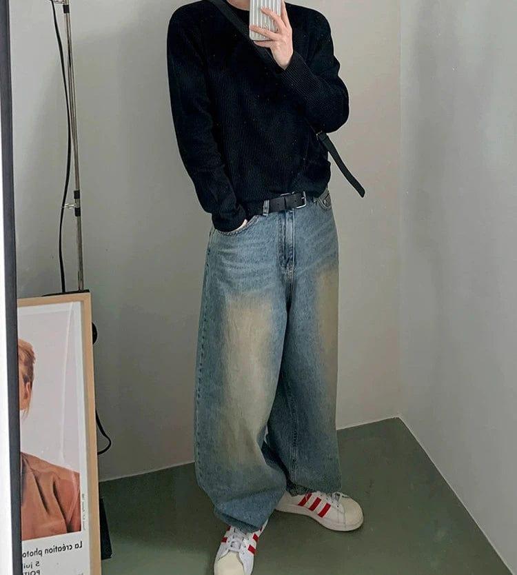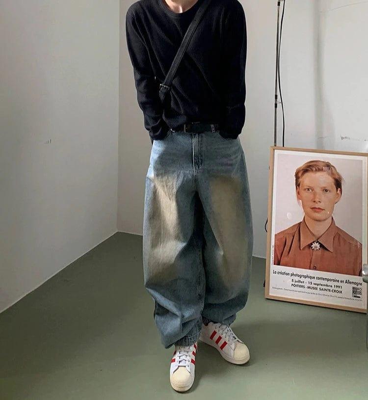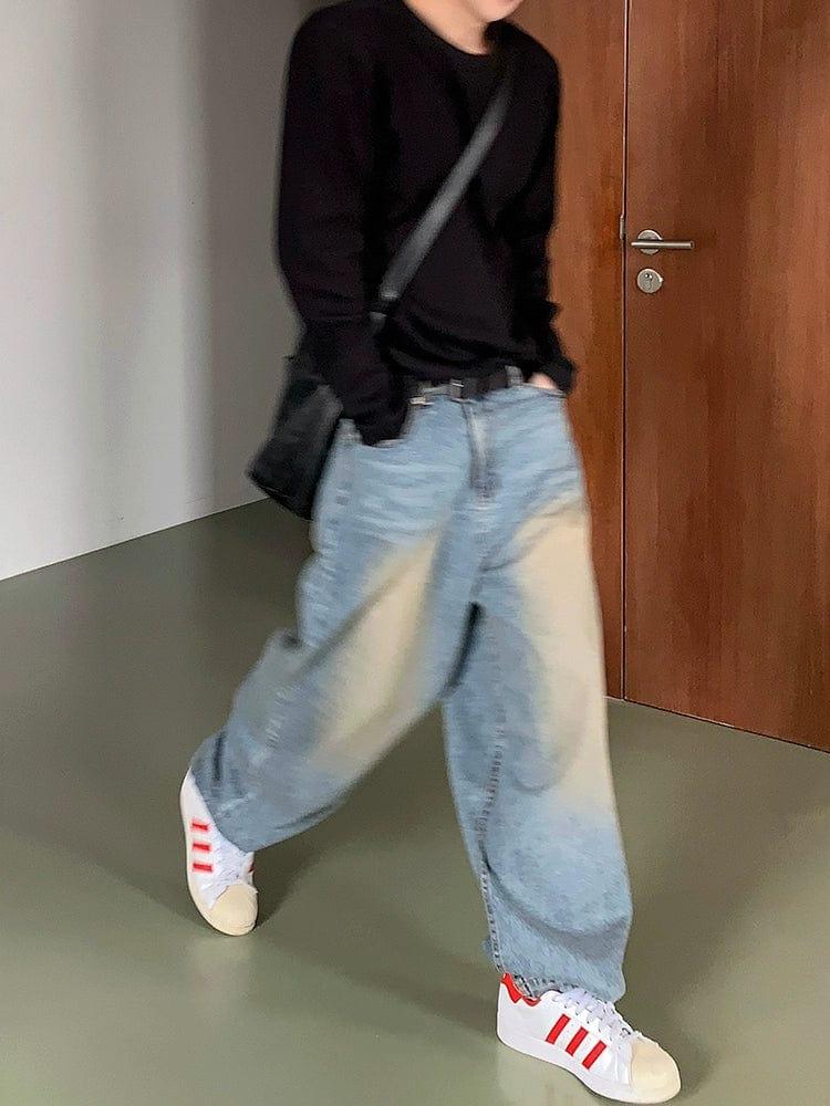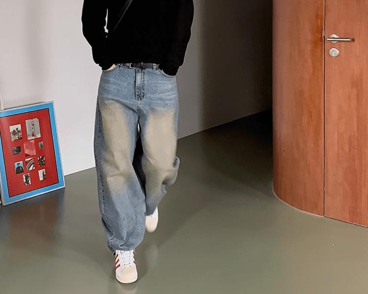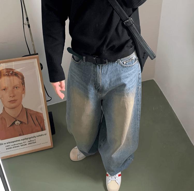 - BLUE- WASHED- Denim- Wide straight fit