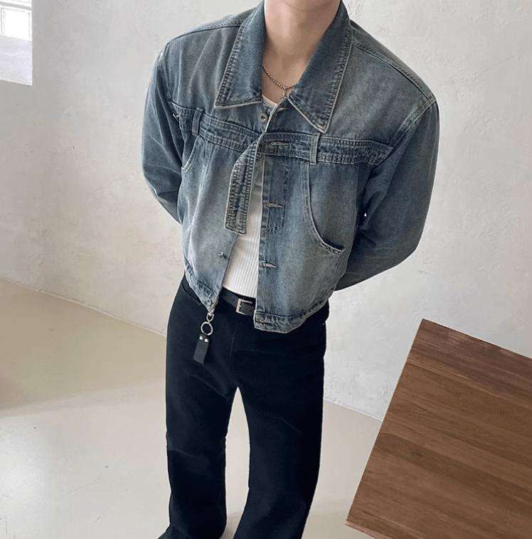 - BLUE- Denim- Zip-up- Slightly cropped style