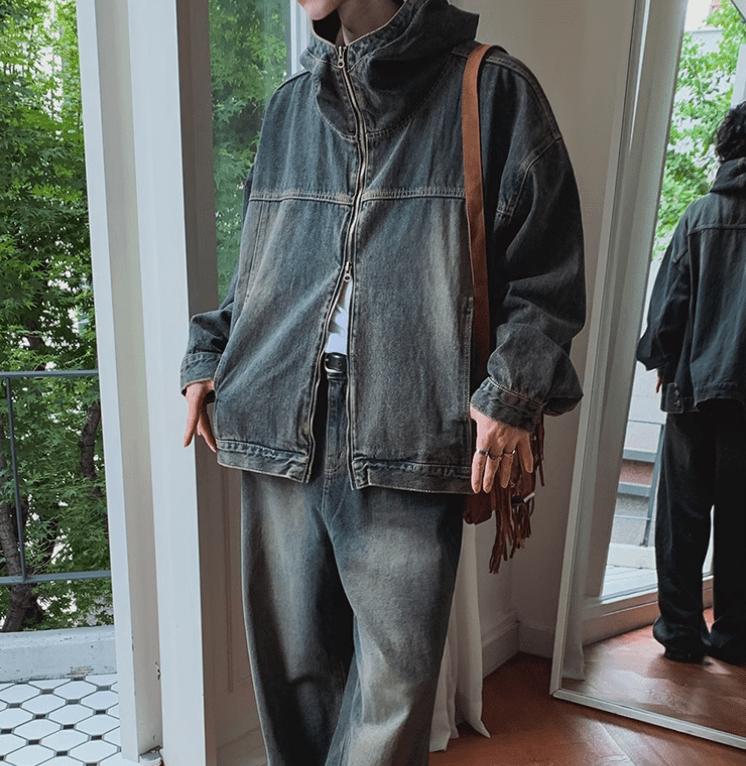 - sold-separately- Cotton 68% - Polyester 32%- BLUE DENIM- Hooded (top)- Zip-up (top)- Relax straight fit (bottom)