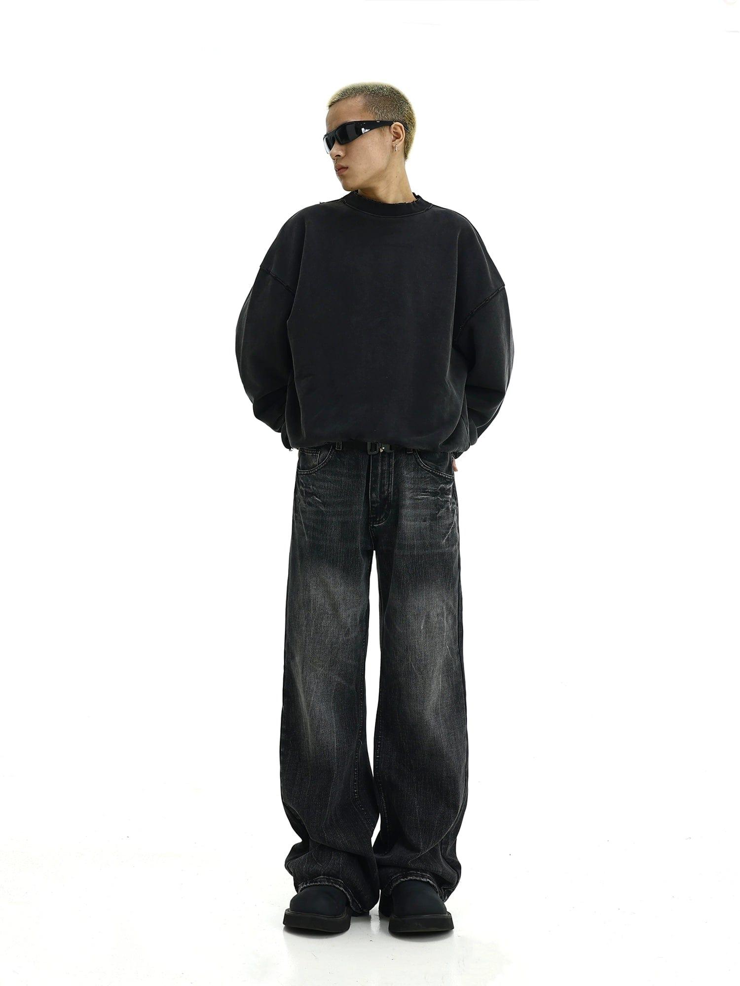 RT No. 12663 WASHED BLACK WIDE STRAIGHT DENIM JEANS