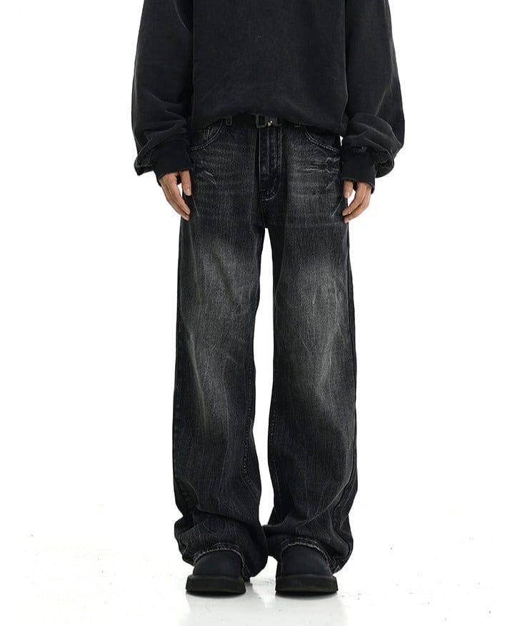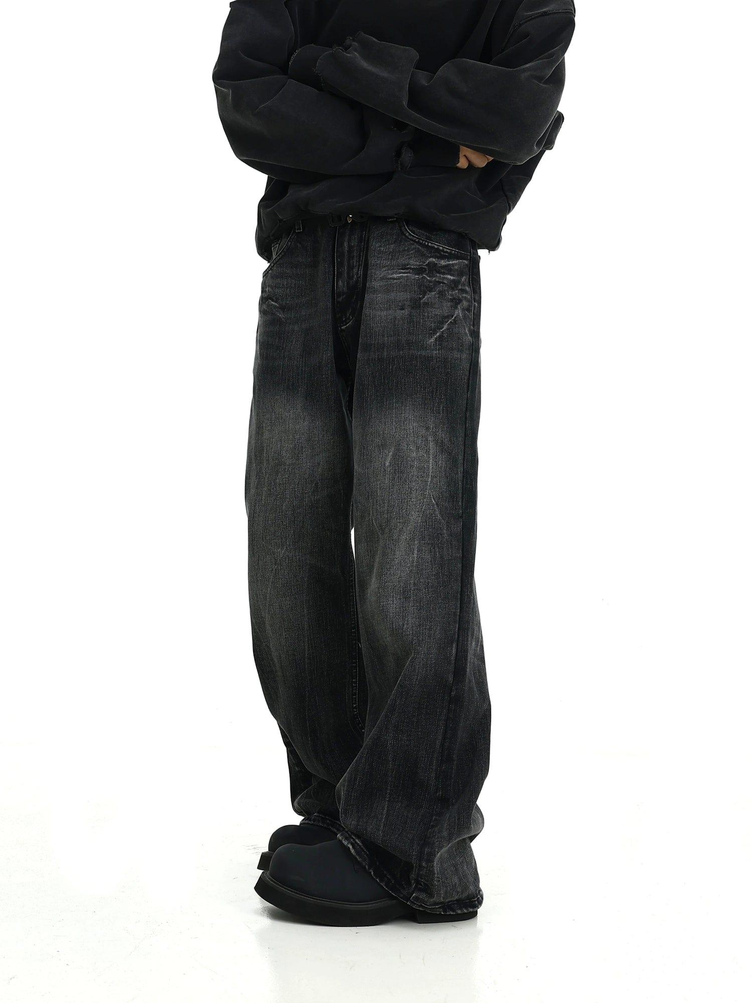 RT No. 10813 WASHED BLACK WIDE STRAIGHT DENIM JEANS