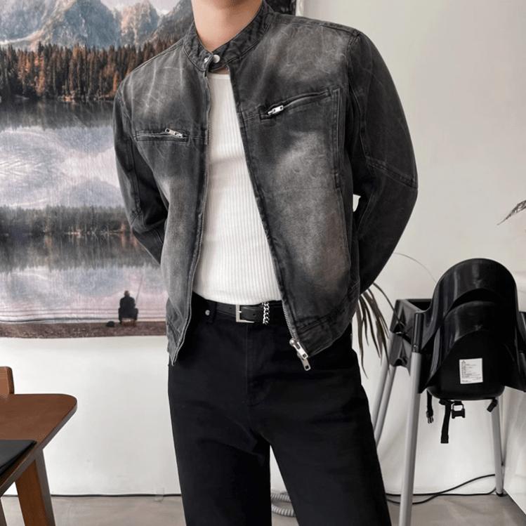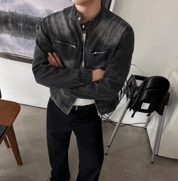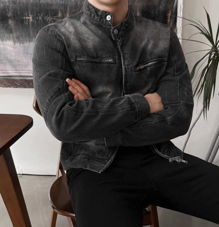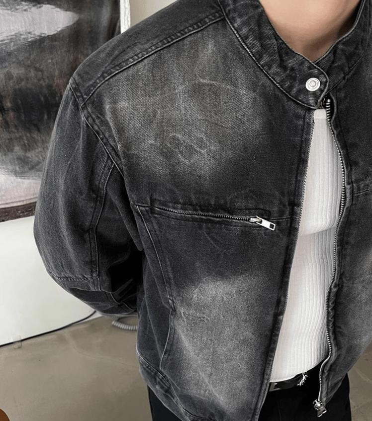- WASHED BLACK- Motorcycle collar- Chest zipper- Cotton 75%- Polyester 25%- DENIM