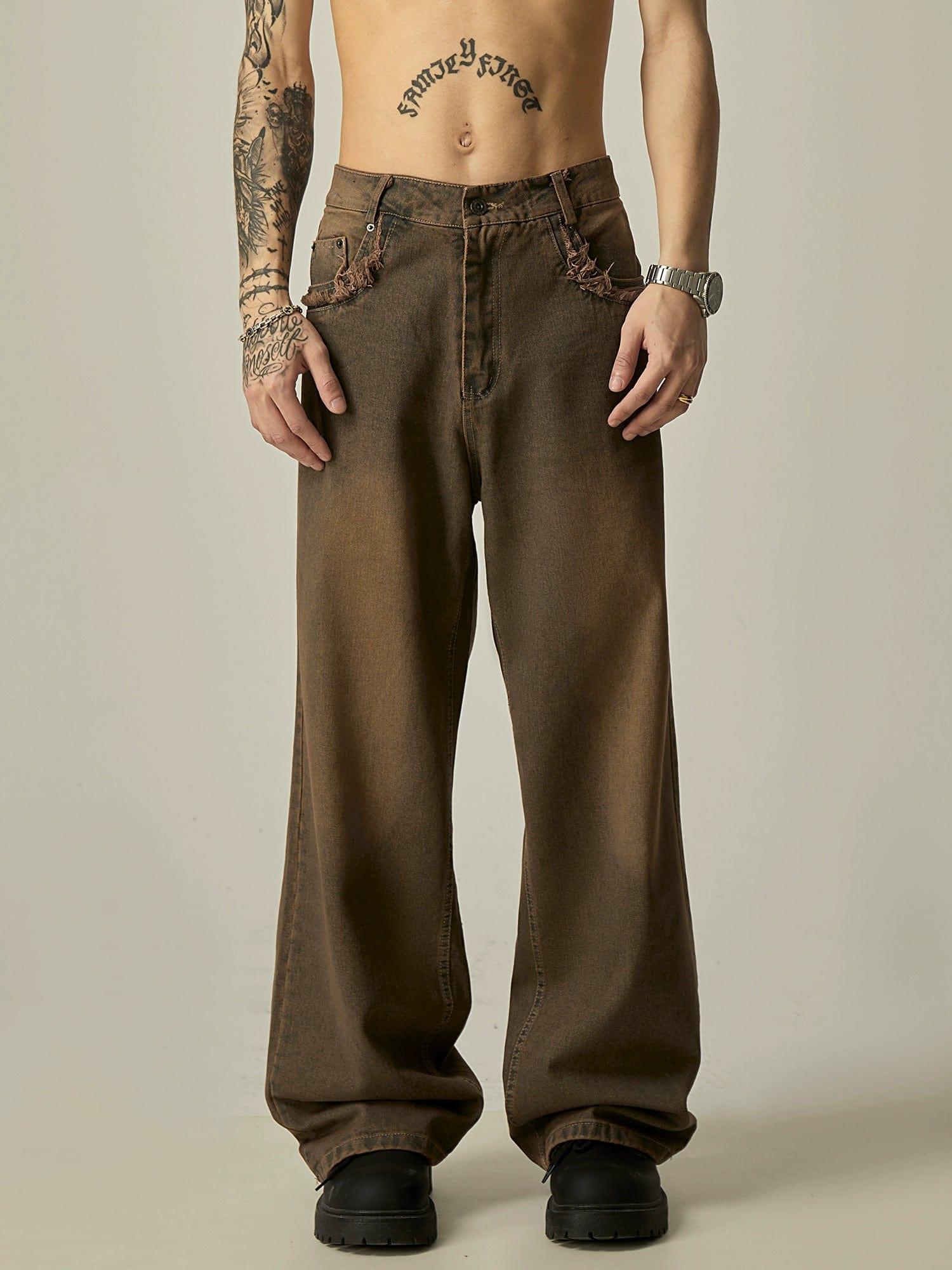 RT No. 11204 BROWN RECONSTRUCTED RELAX STRAIGHT JEANS