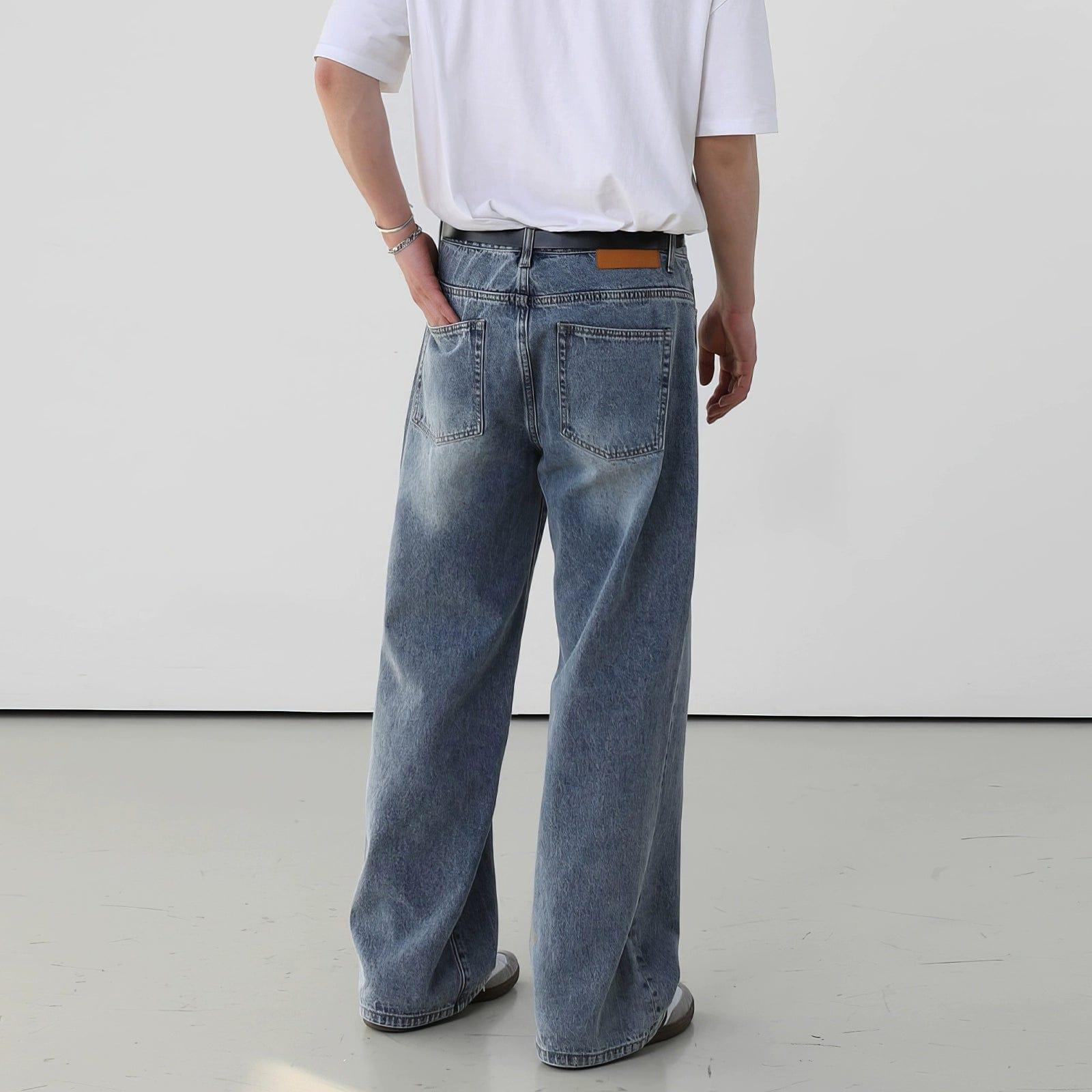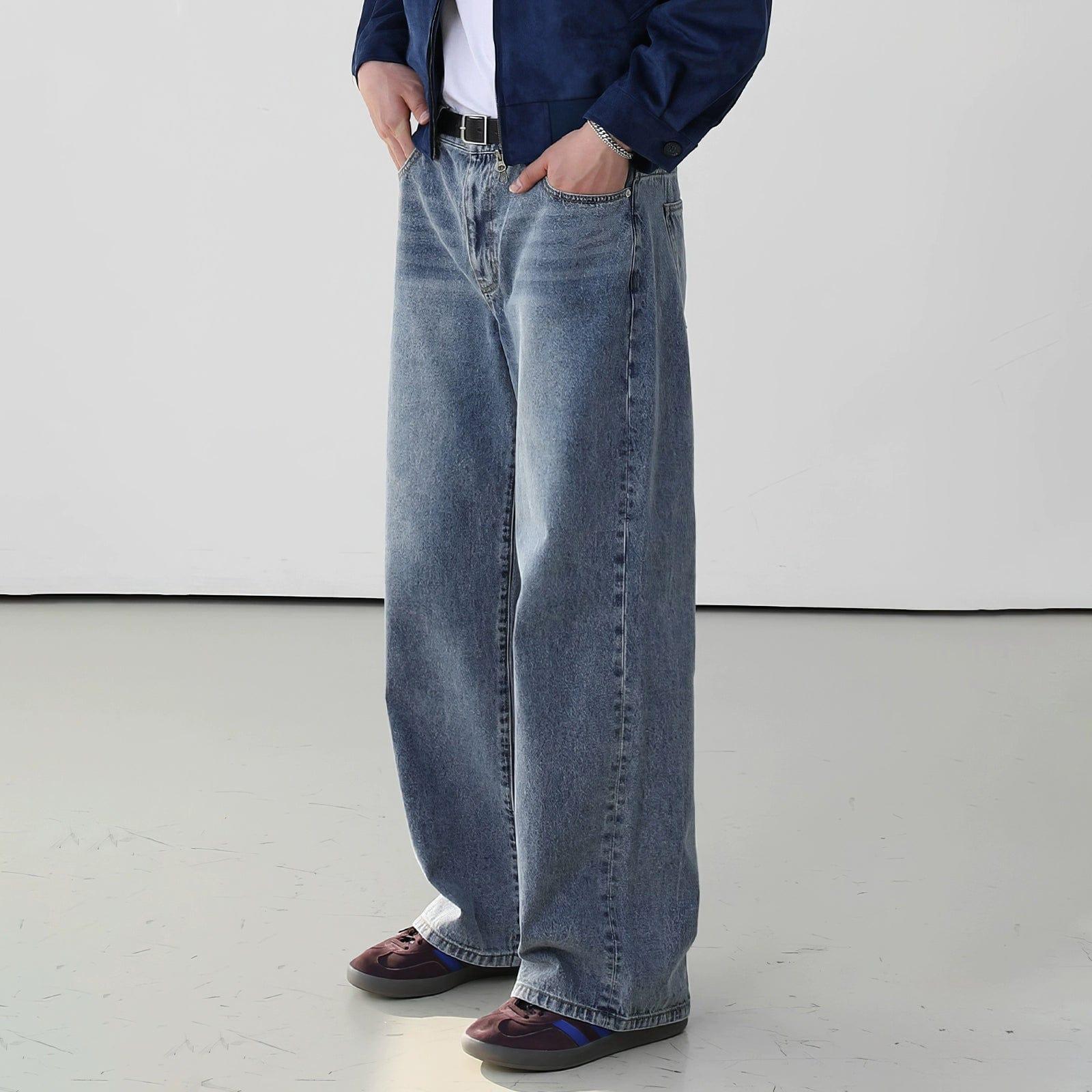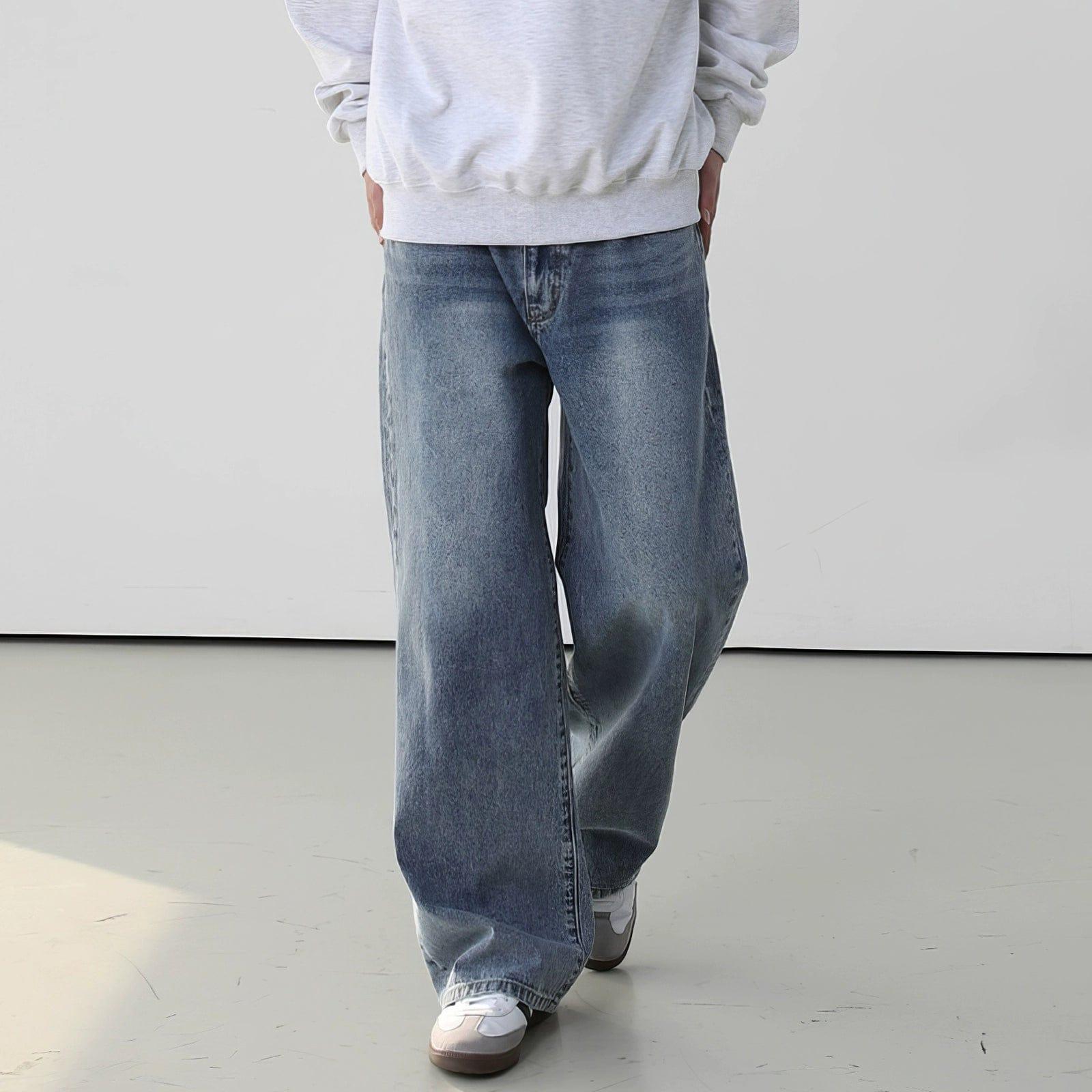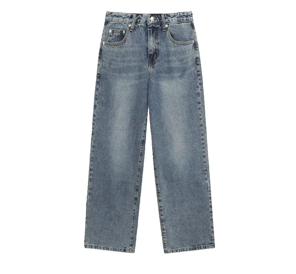 - BLUE- Cotton 100%- DENIM washed- Wide straight fit