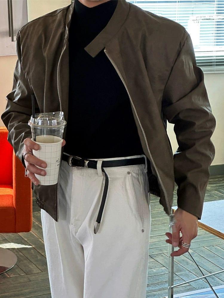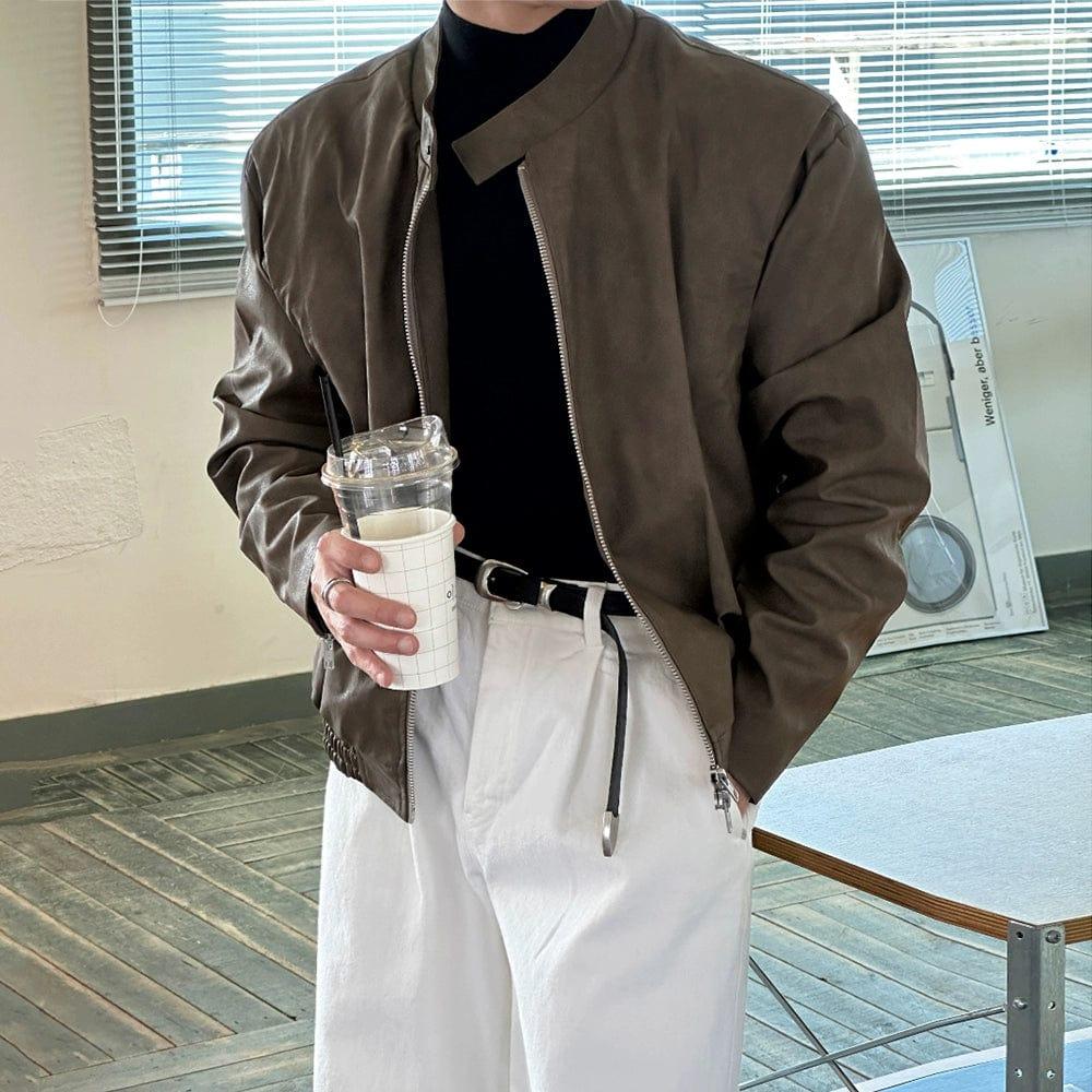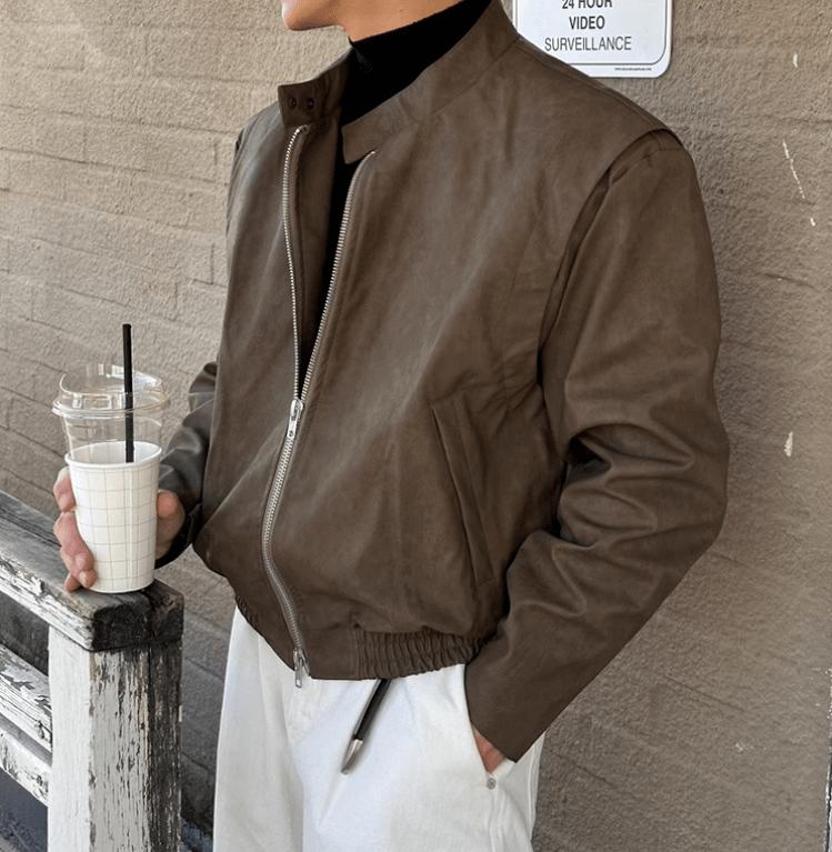 - BROWN- Motorcycle collar - Zip-up- Faux leather