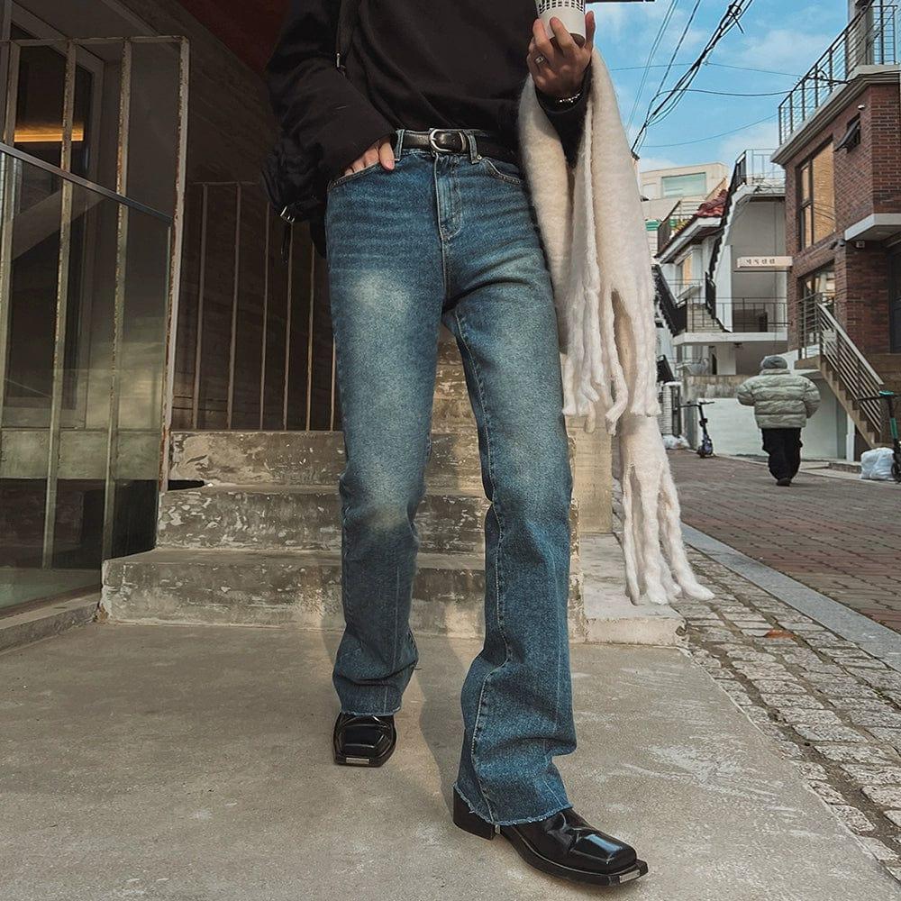 - Micro-flared style- Slim straight fit- Distressed- Washed- DENIM- 2 colors
