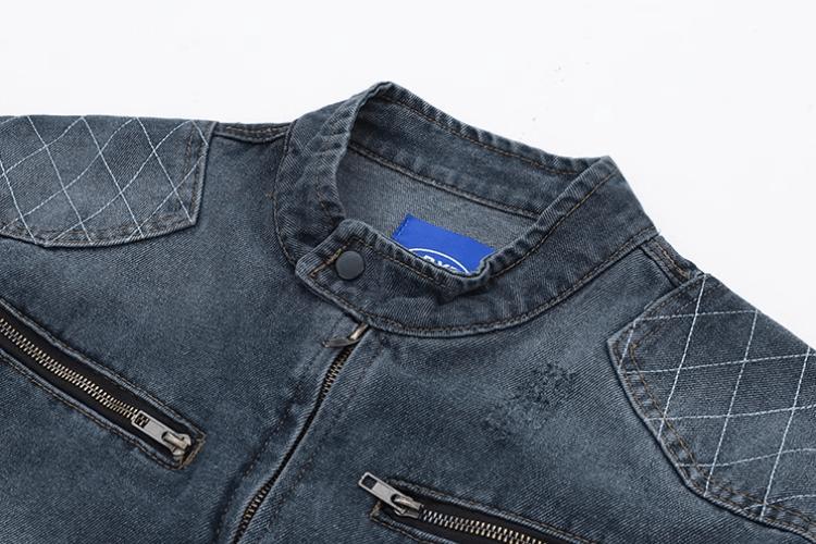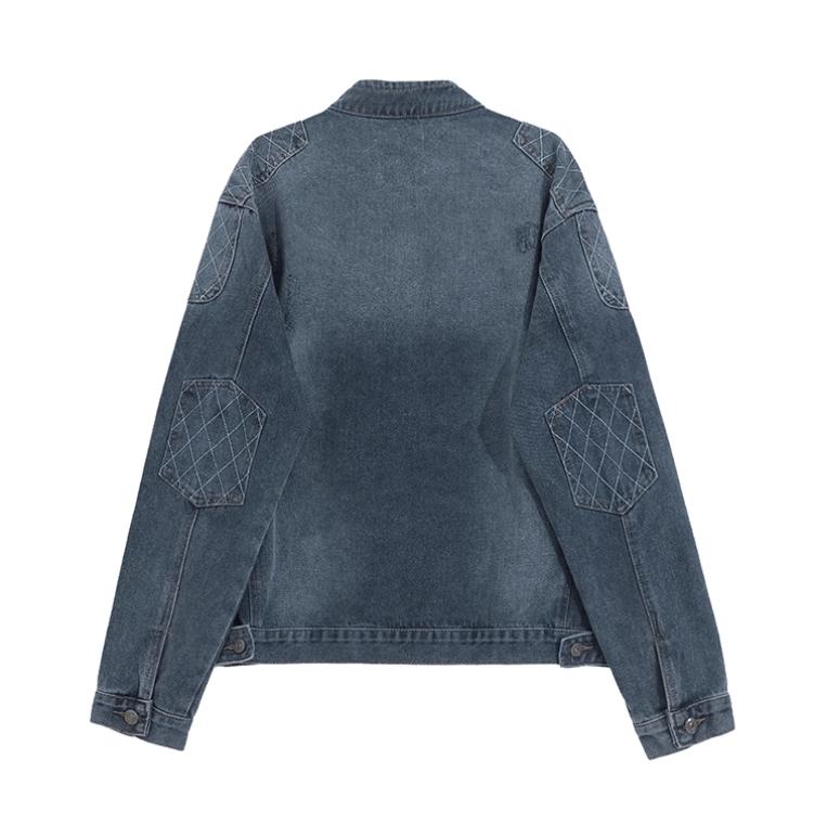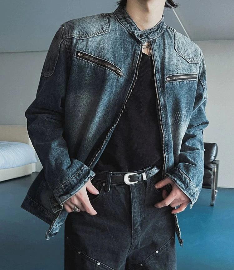 - BLUE DENIM- Chest zip-up- Motorcycle collar- Zip-up