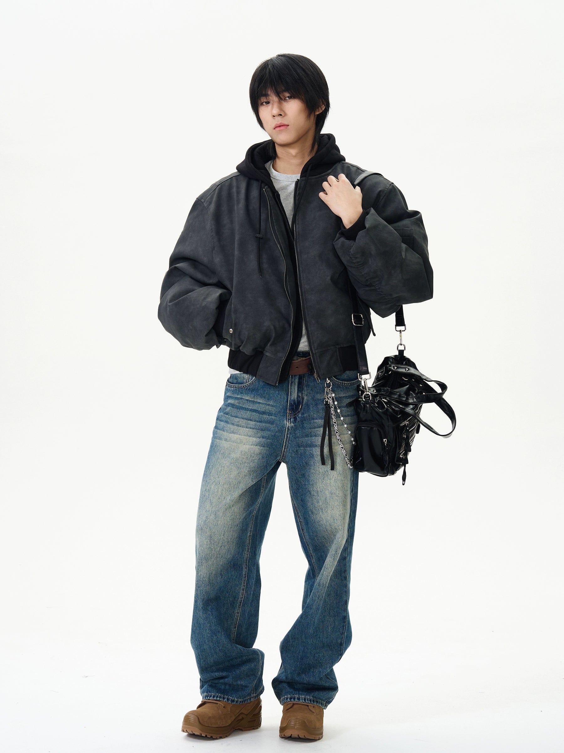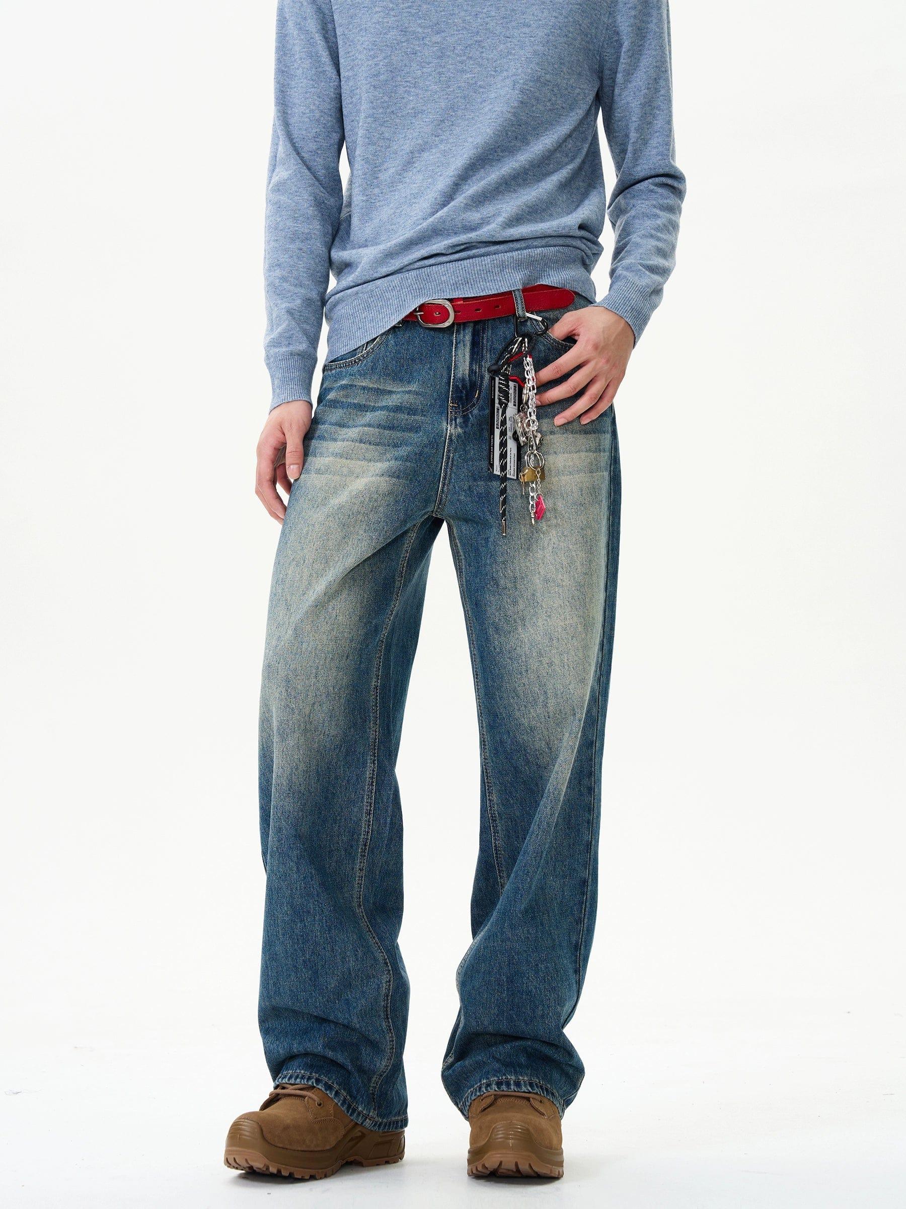 RT No. 12060 WASHED BLUE RELAX STRAIGHT DENIM JEANS