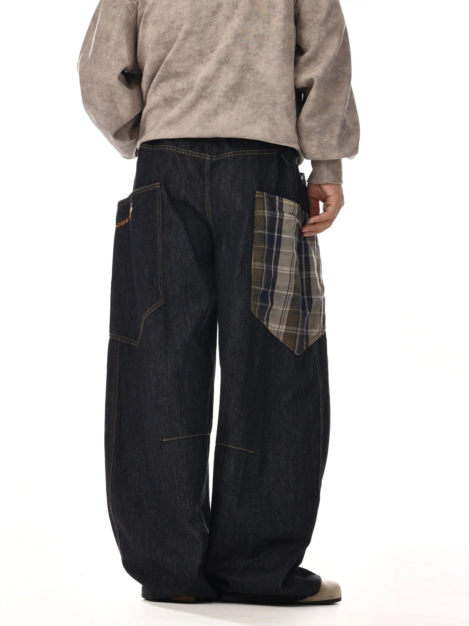 RT No. 12126 BLACK PLAID WORKWEAR BAGGY JEANS