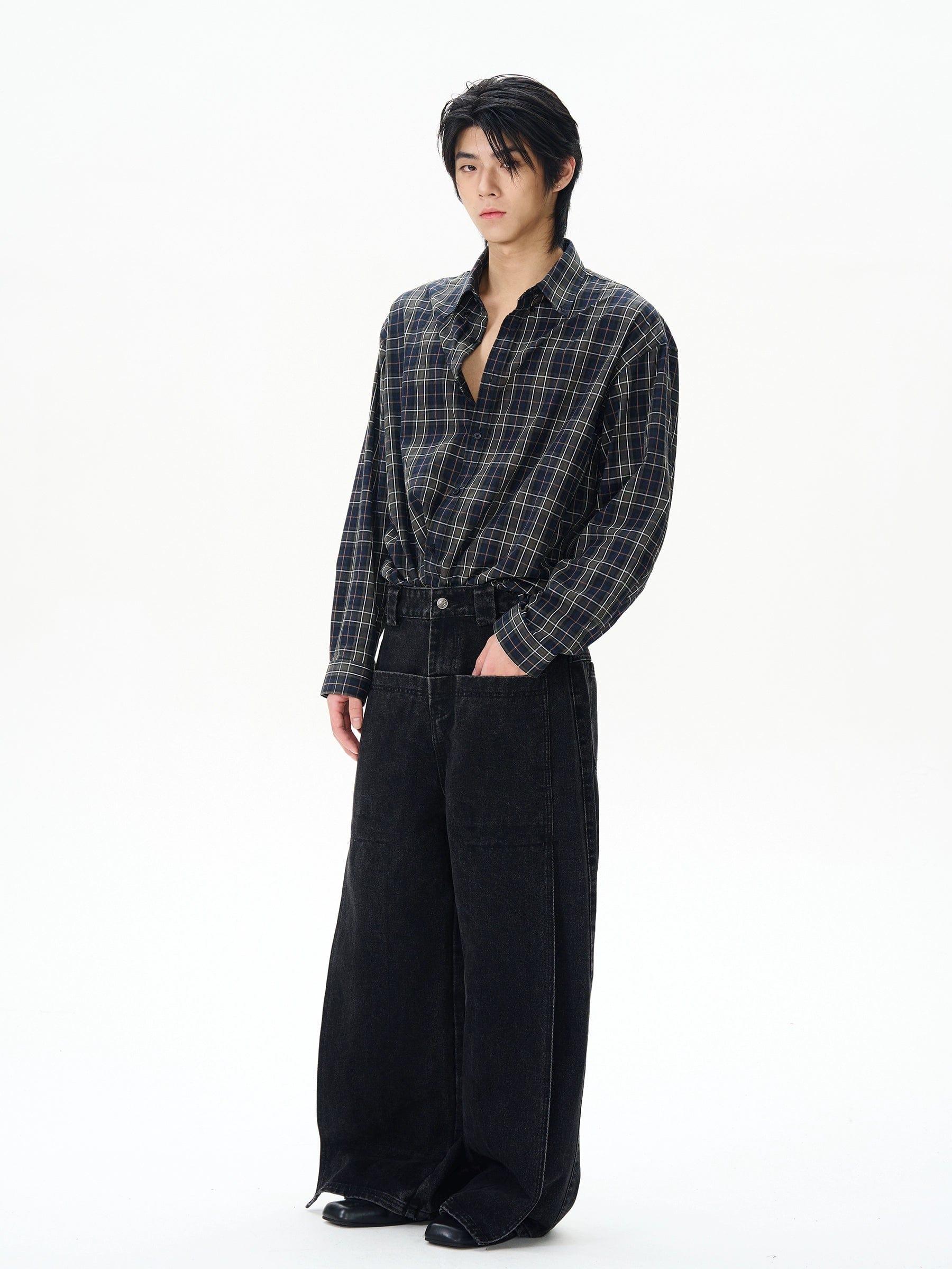 Model is 5ft 10''(178cm) tall, 145 lbs(66kg) weight and wearing a size L168cm 59kg wearing a size M - BLACK- Wide straight fit- DENIM- UNISEX
