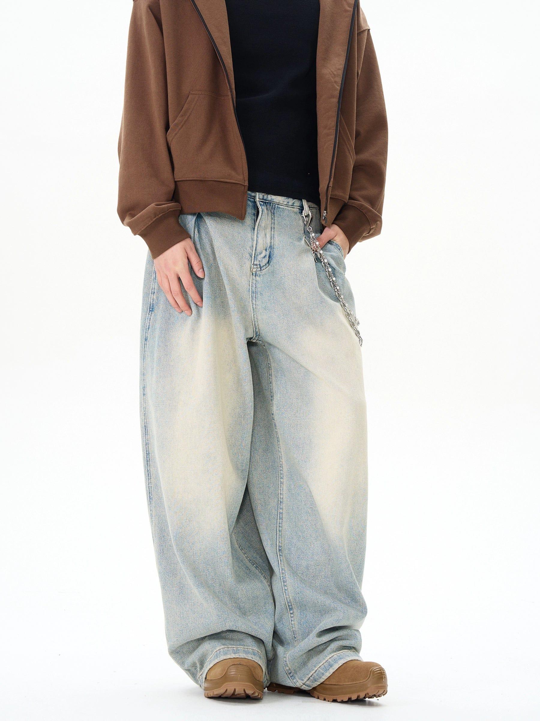 RT No. 12079 PLEATED FOLDED BLUE BAGGY STRAIGHT JEANS