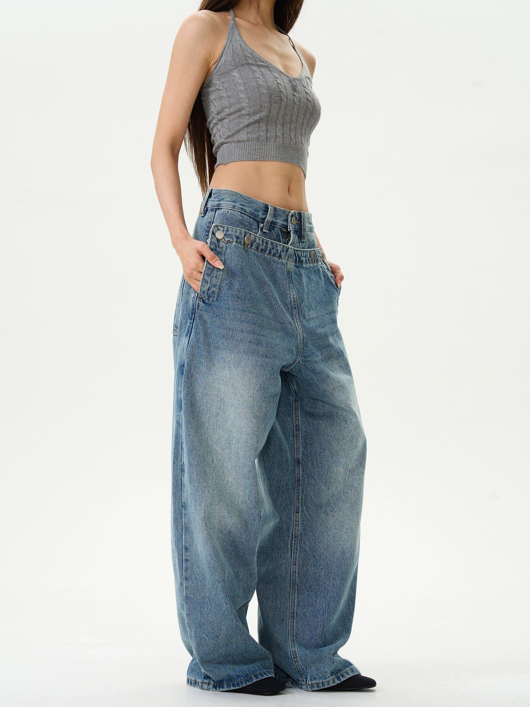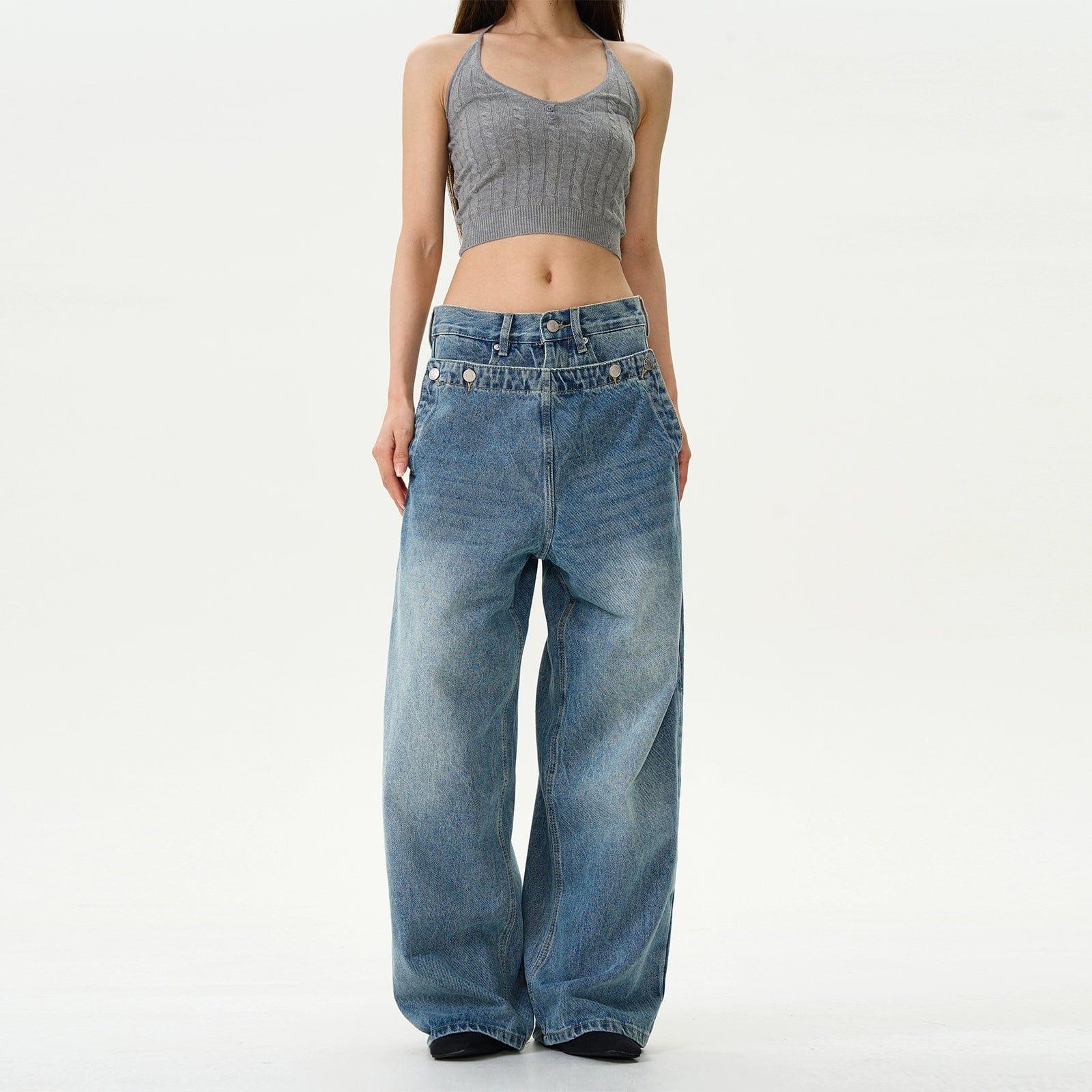 RT No. 12157 DOUBLE WAIST DENIM JEANS