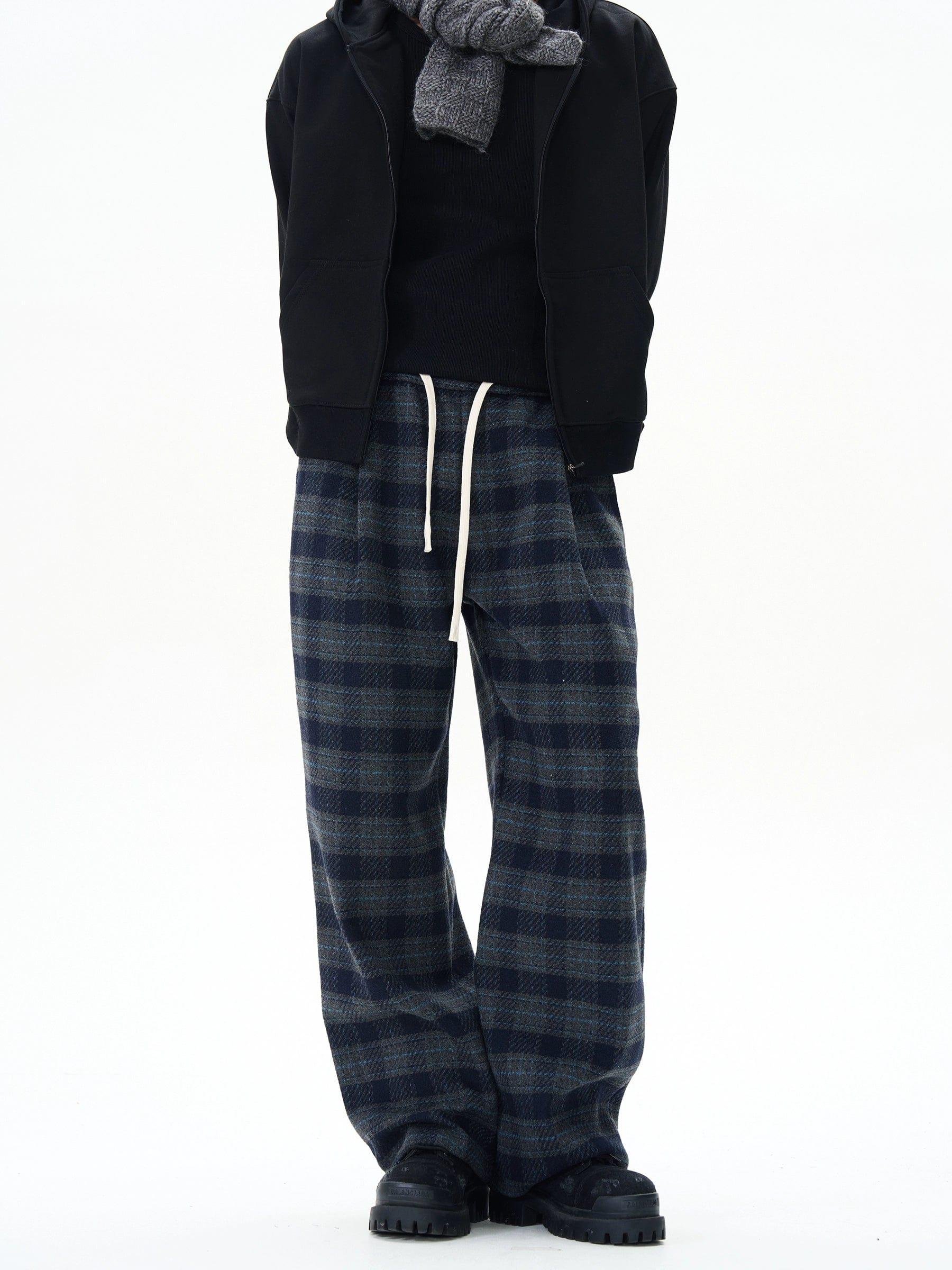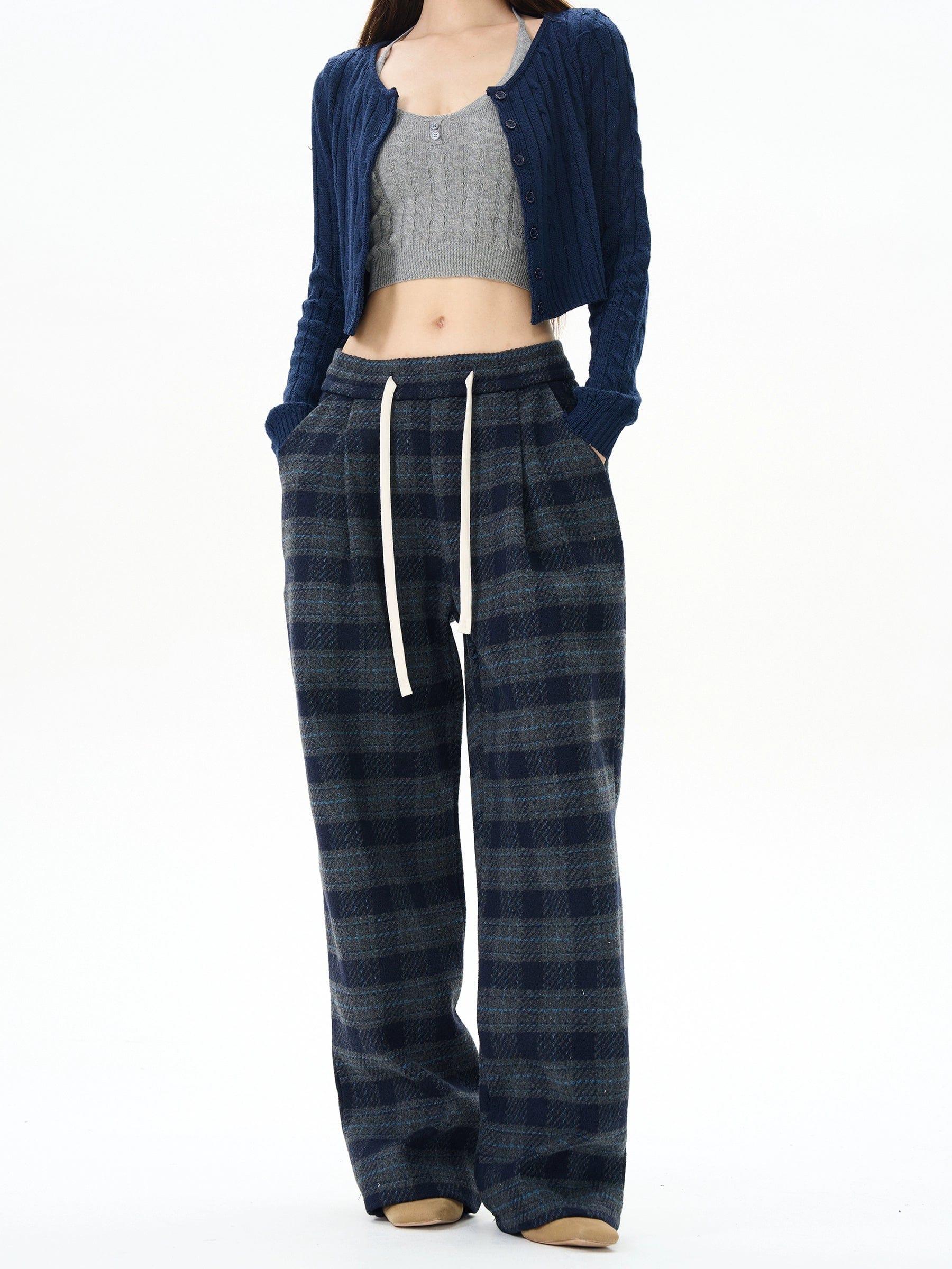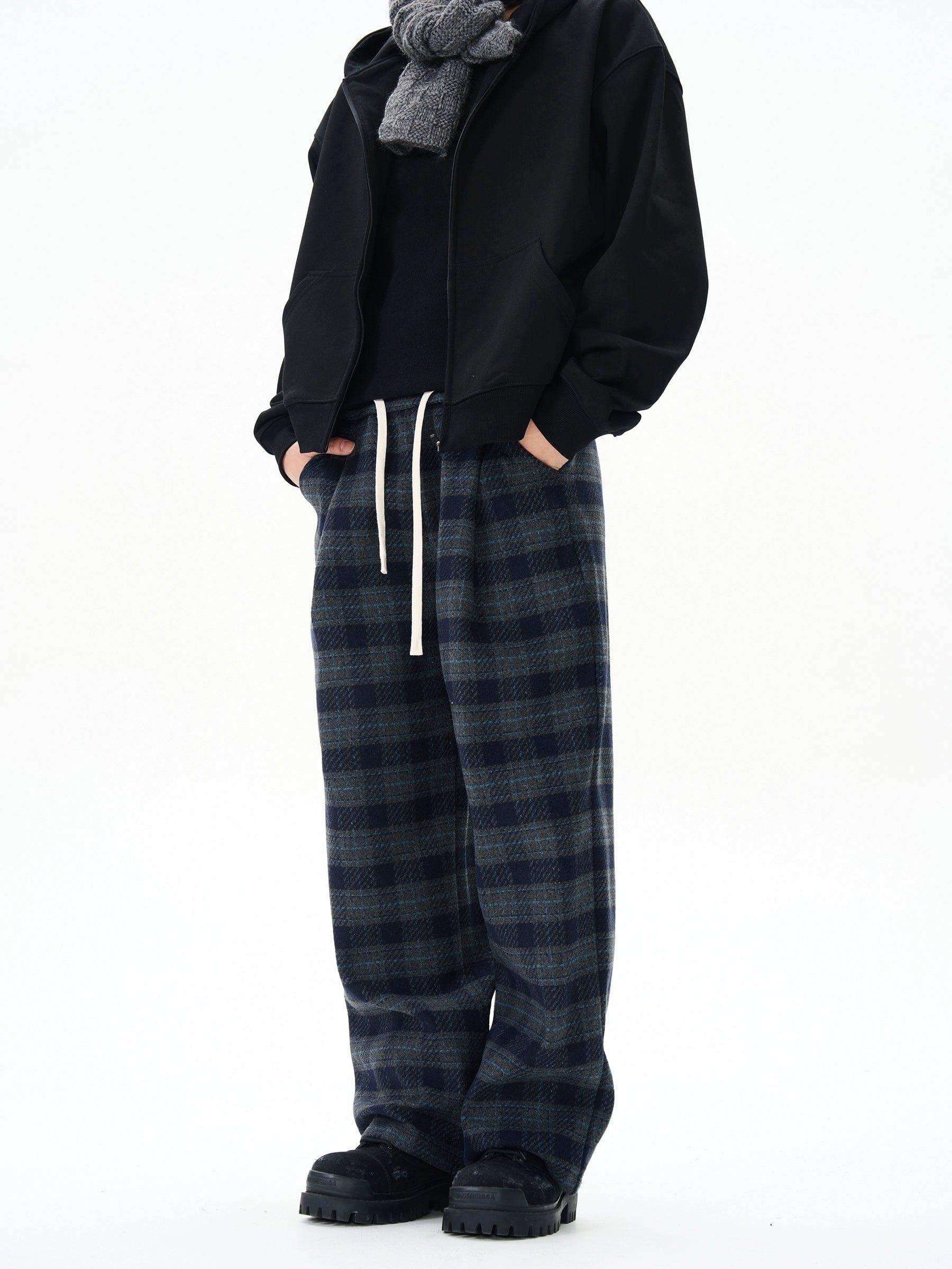 RT No. 12173 BLUE PLAID STRAIGHT DRAWSTRING SWEATPANTS