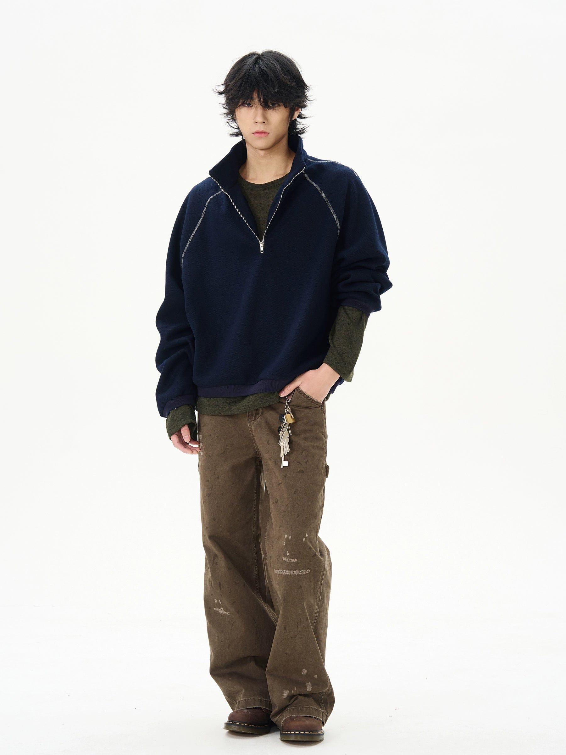 RT No. 12212 STITCHED HALF ZIP-UP COLLAR SWEATER