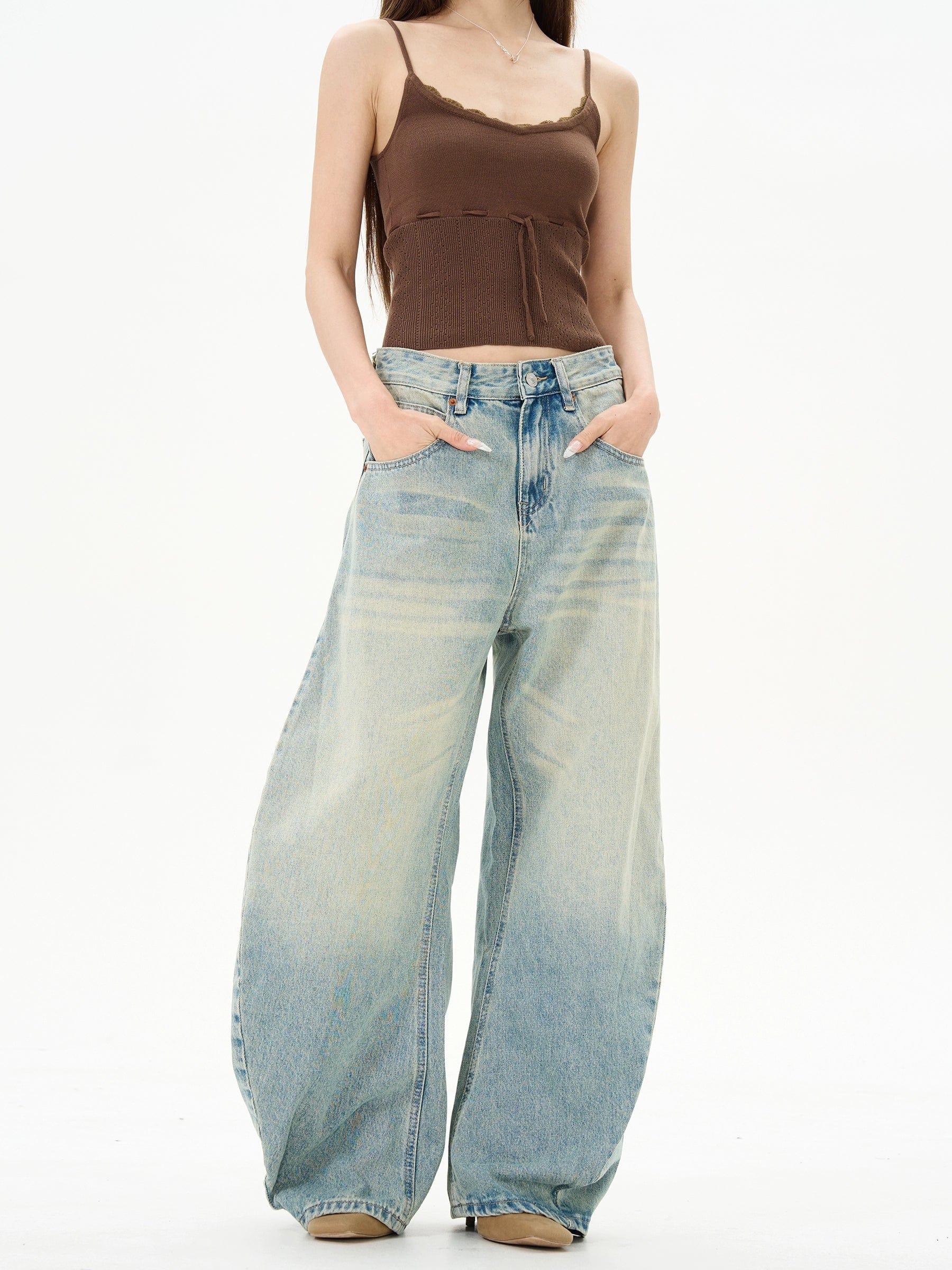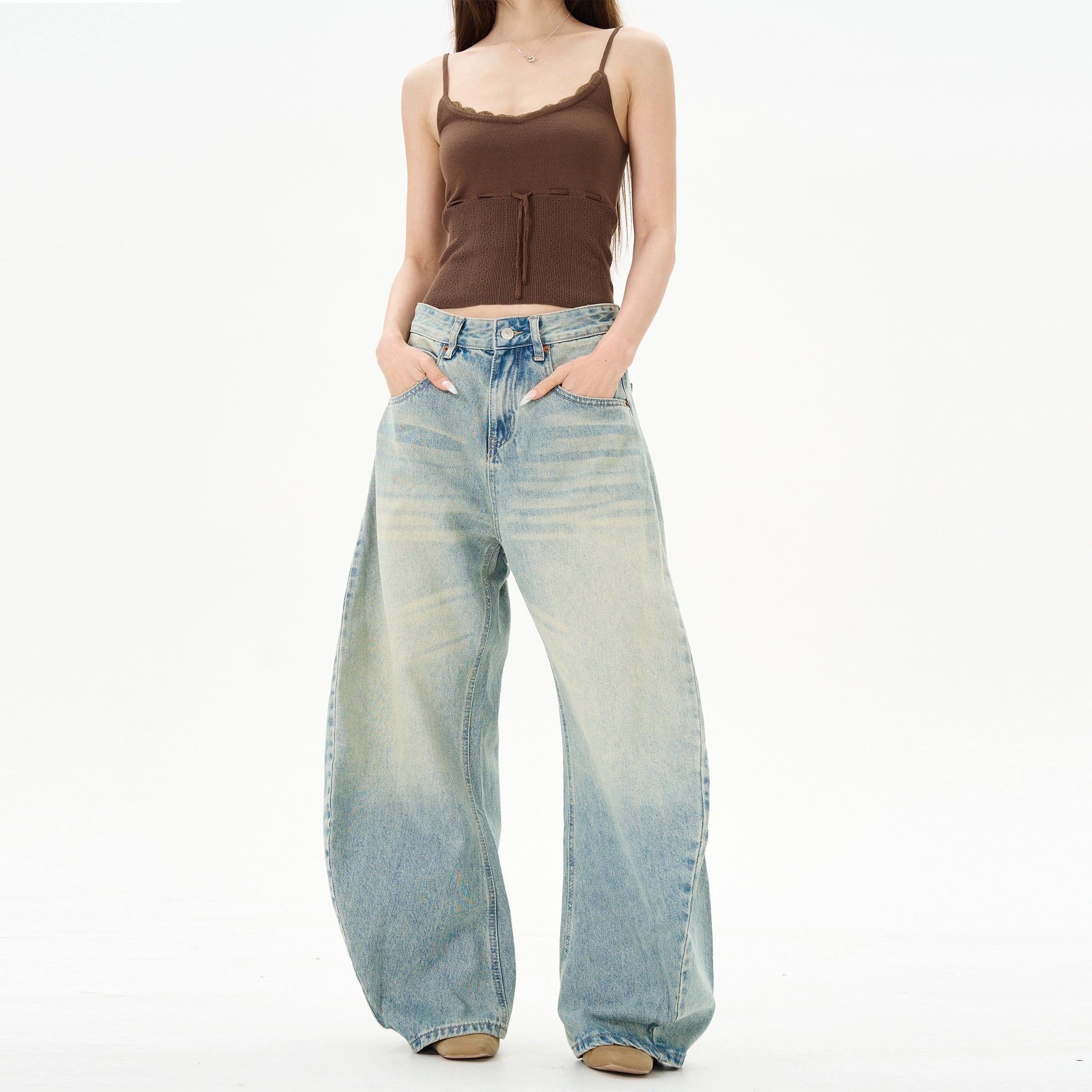 RT No. 12060 WASHED BLUE RELAX STRAIGHT DENIM JEANS