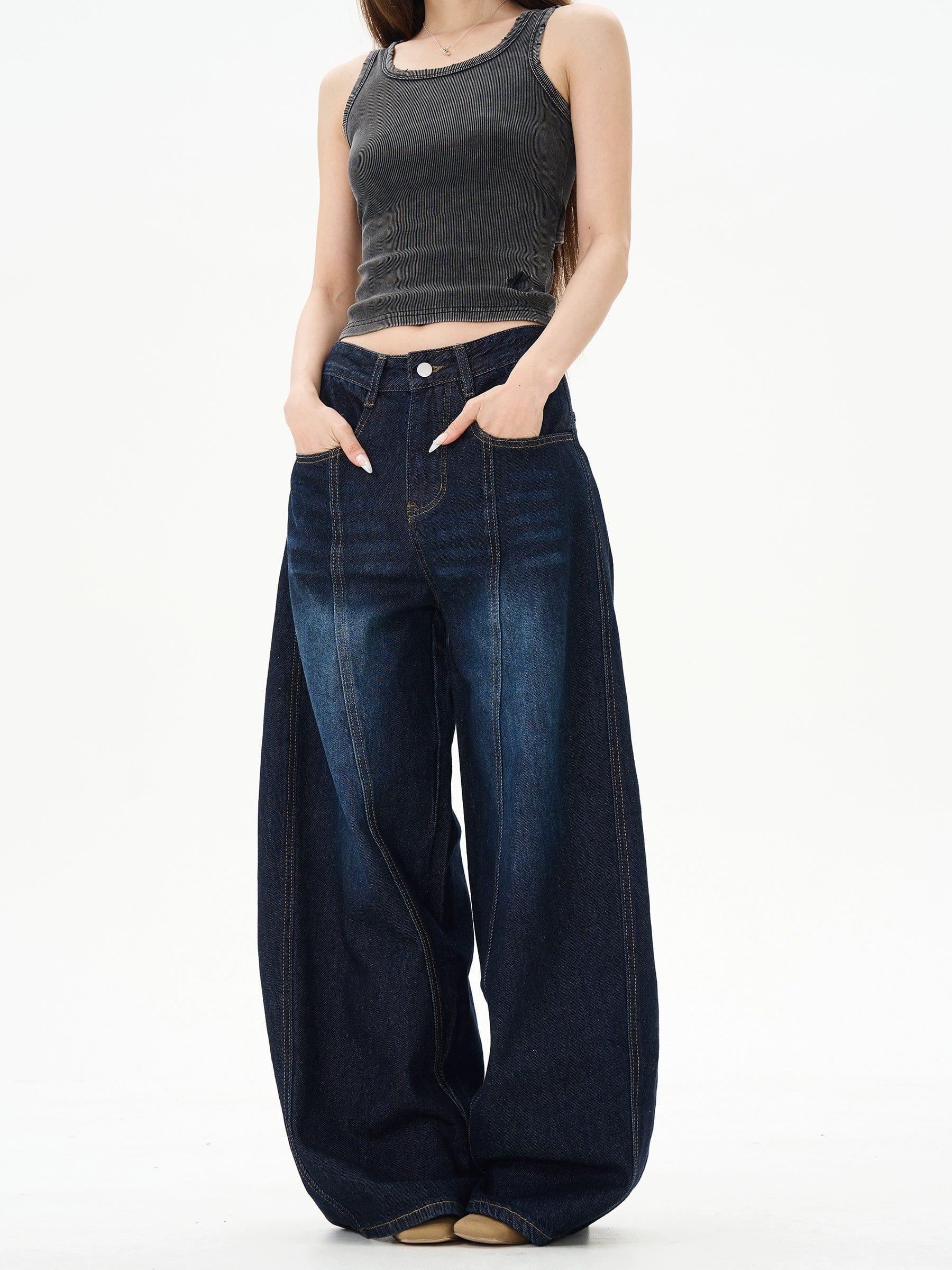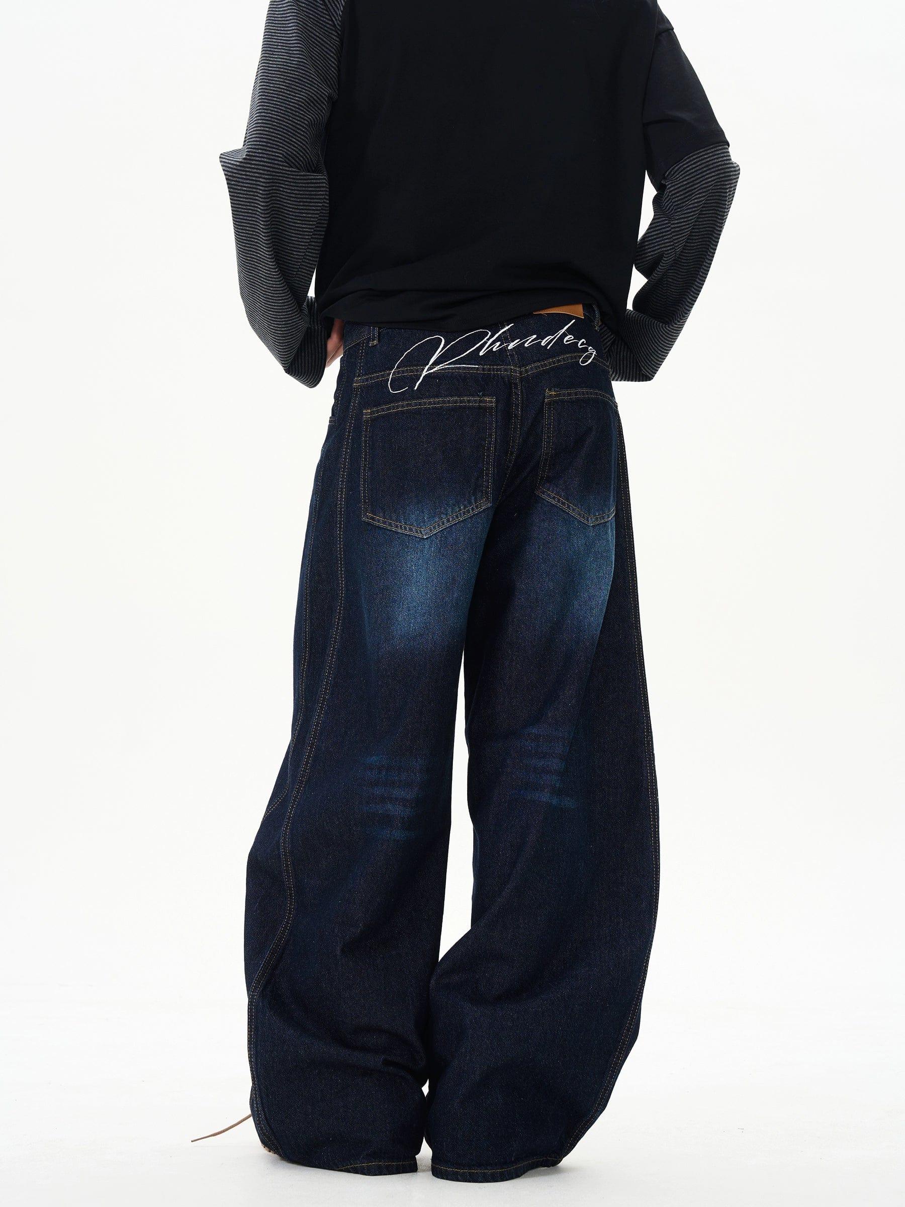 RT No. 12224 DARK BLUE RECONSTRUCTED DENIM SCIMITAR JEANS Unisex