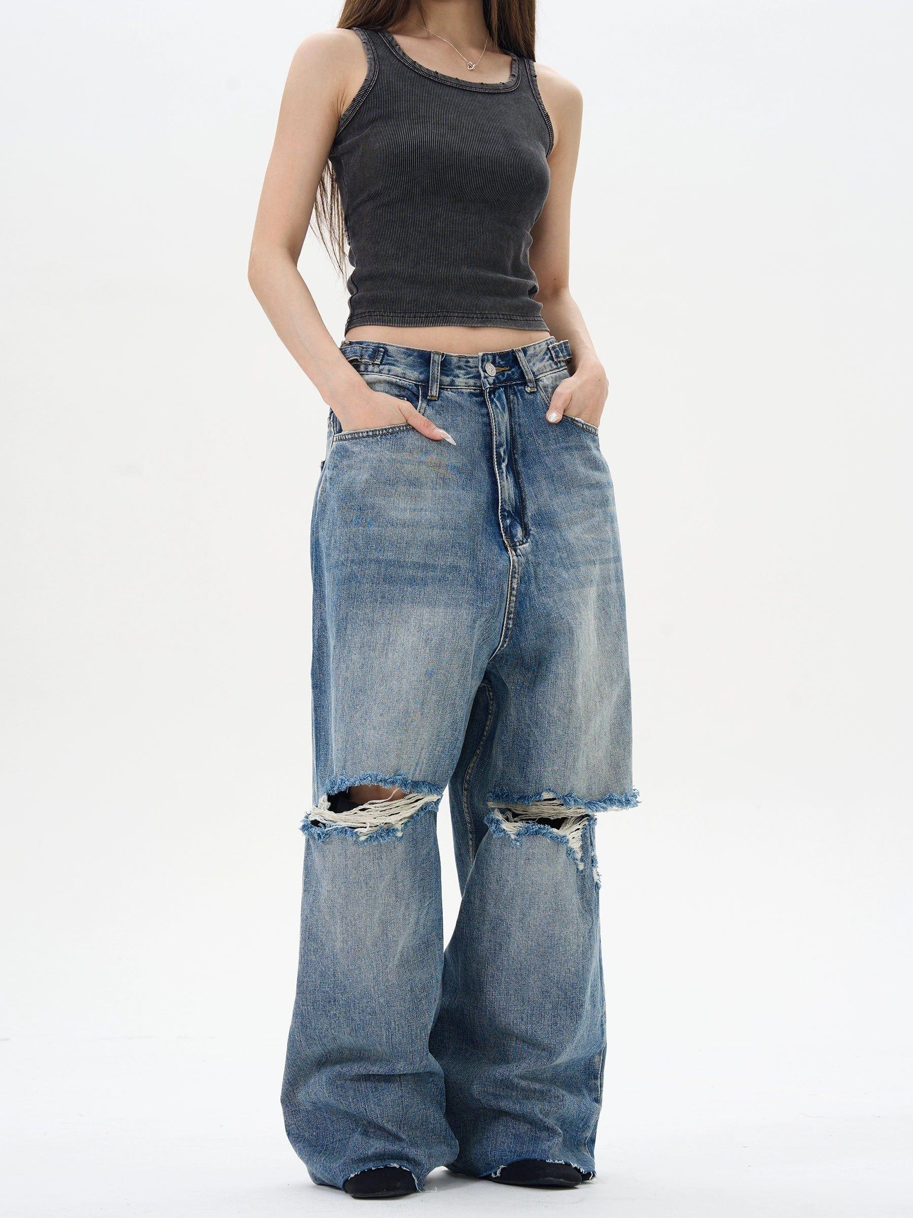 RT No. 12292 RIPPED DISTRESSED DENIM JEANS Unisex