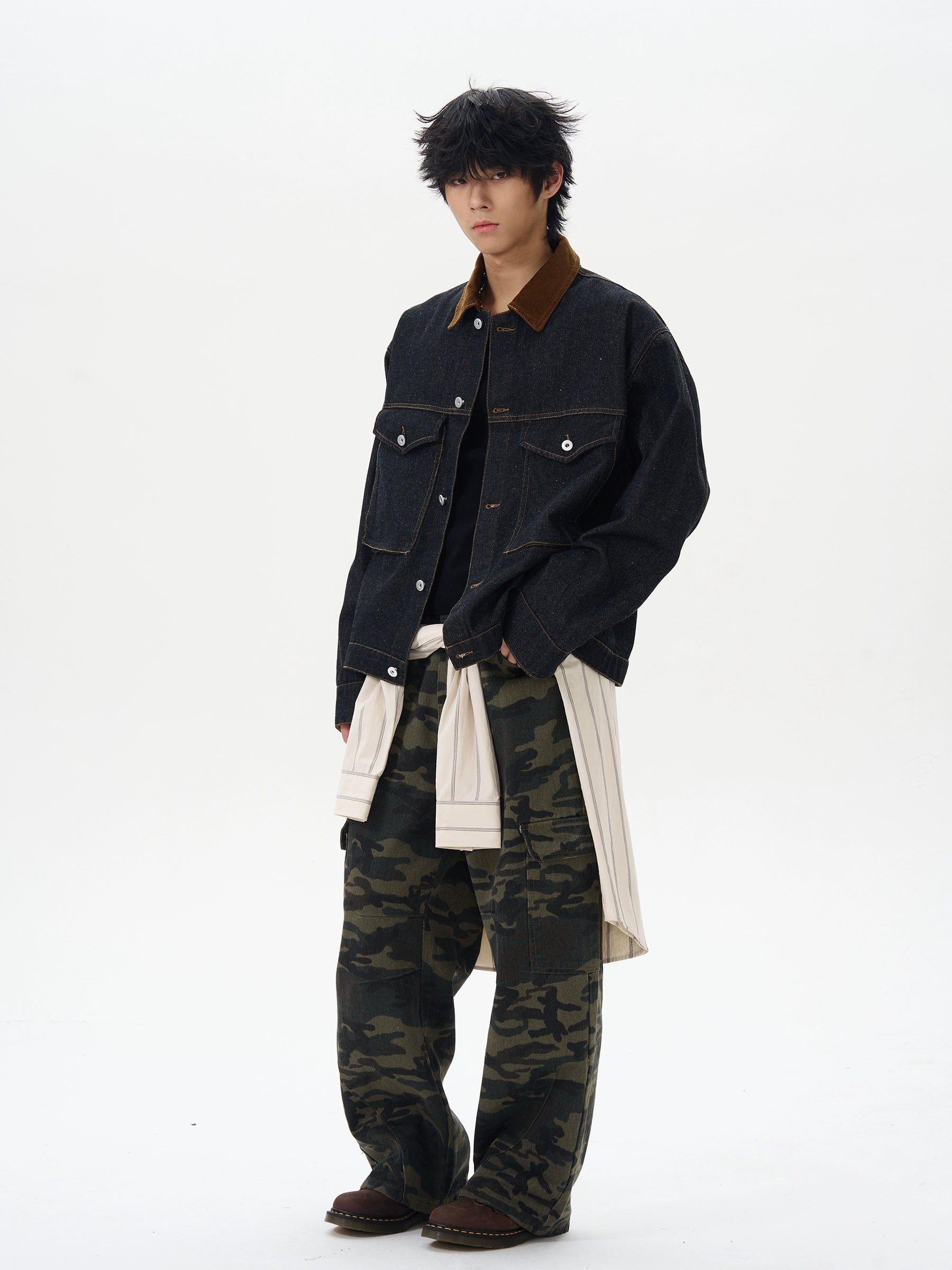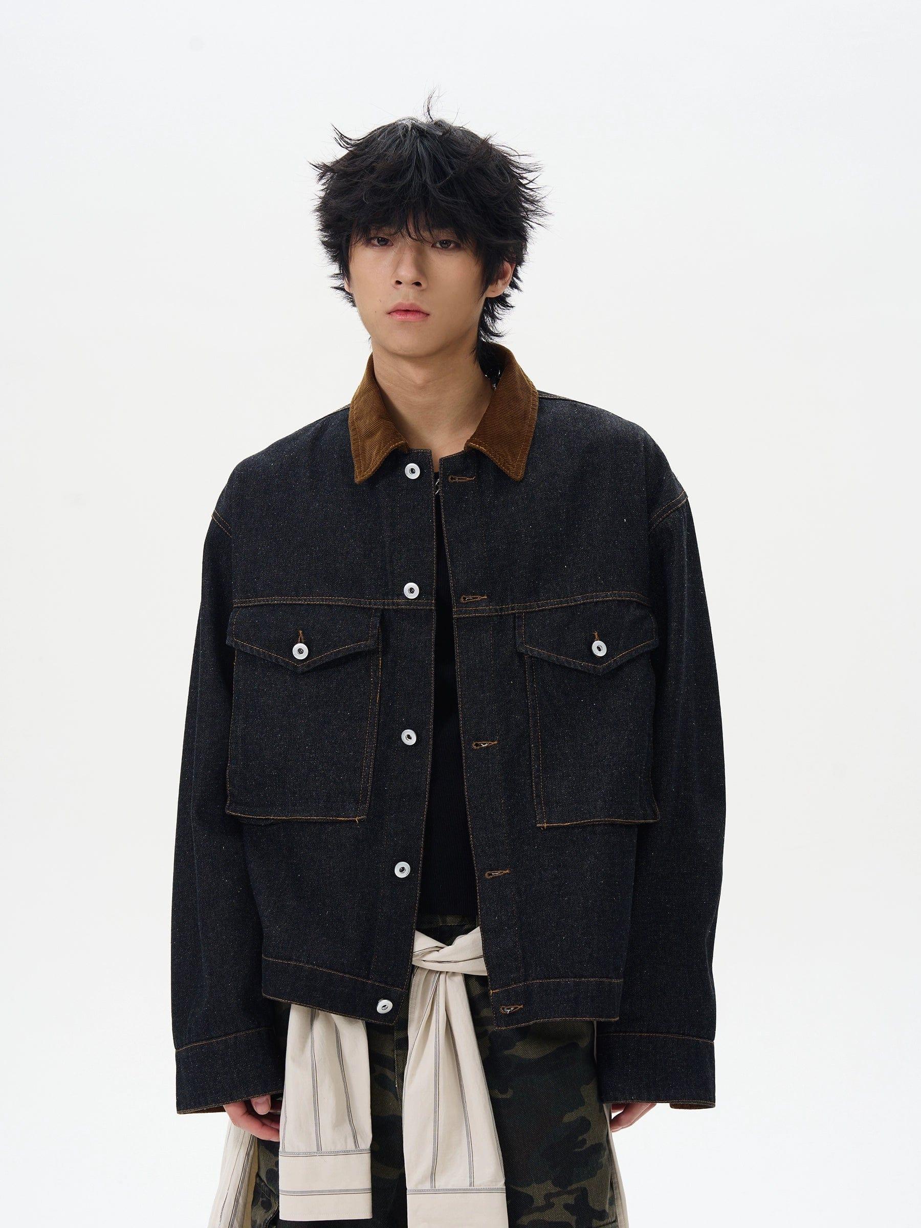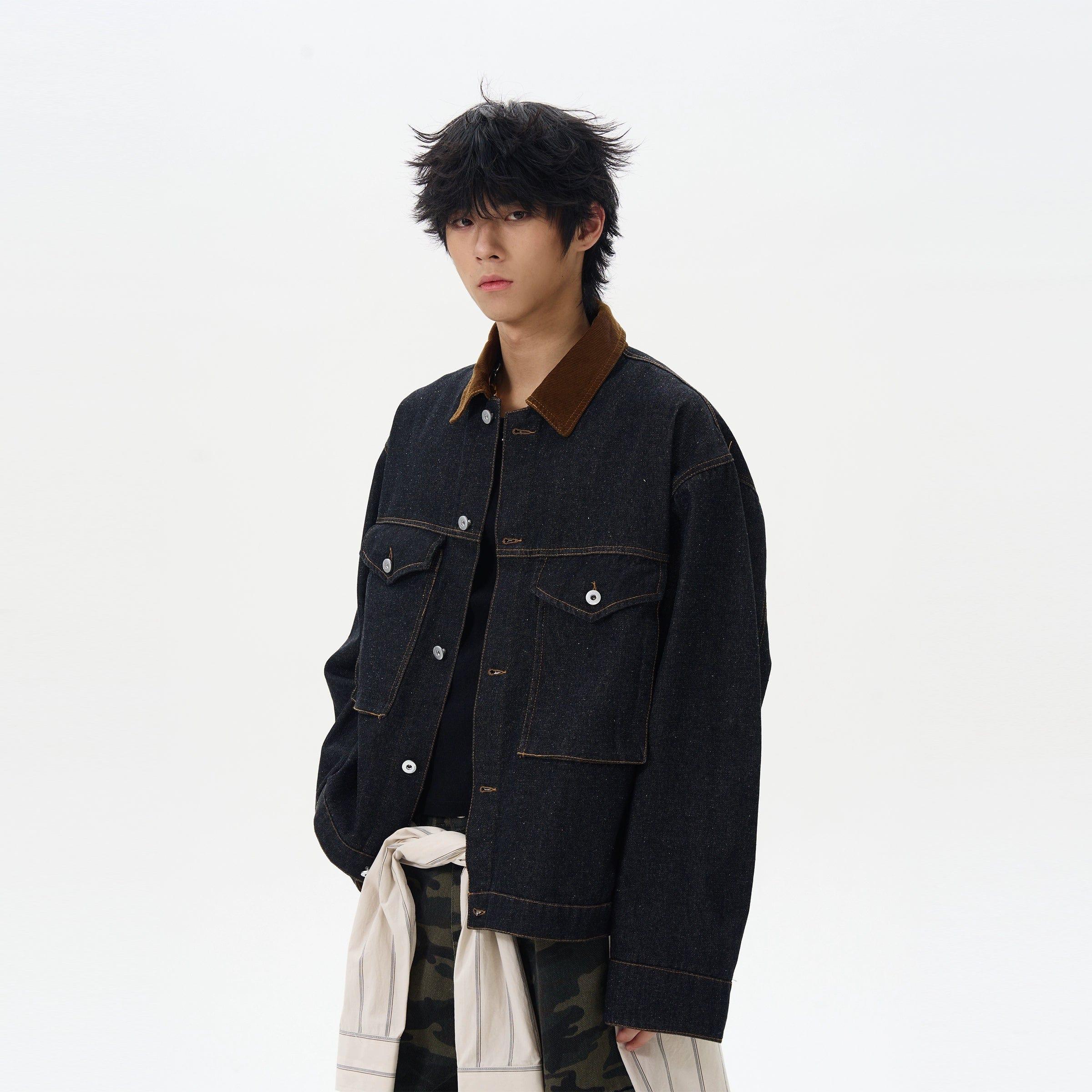 Model is 5ft 10''(178cm) tall, 145 lbs(66kg) weight and wearing a size L168cm 59kg wearing a size M - BLACK - Denim- Two-tone collar- Button-up