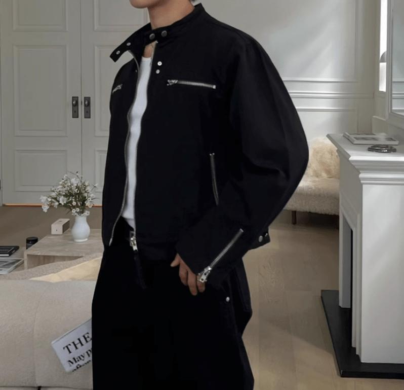 - BLACK- Zipper- Biker collar- Cotton 100%