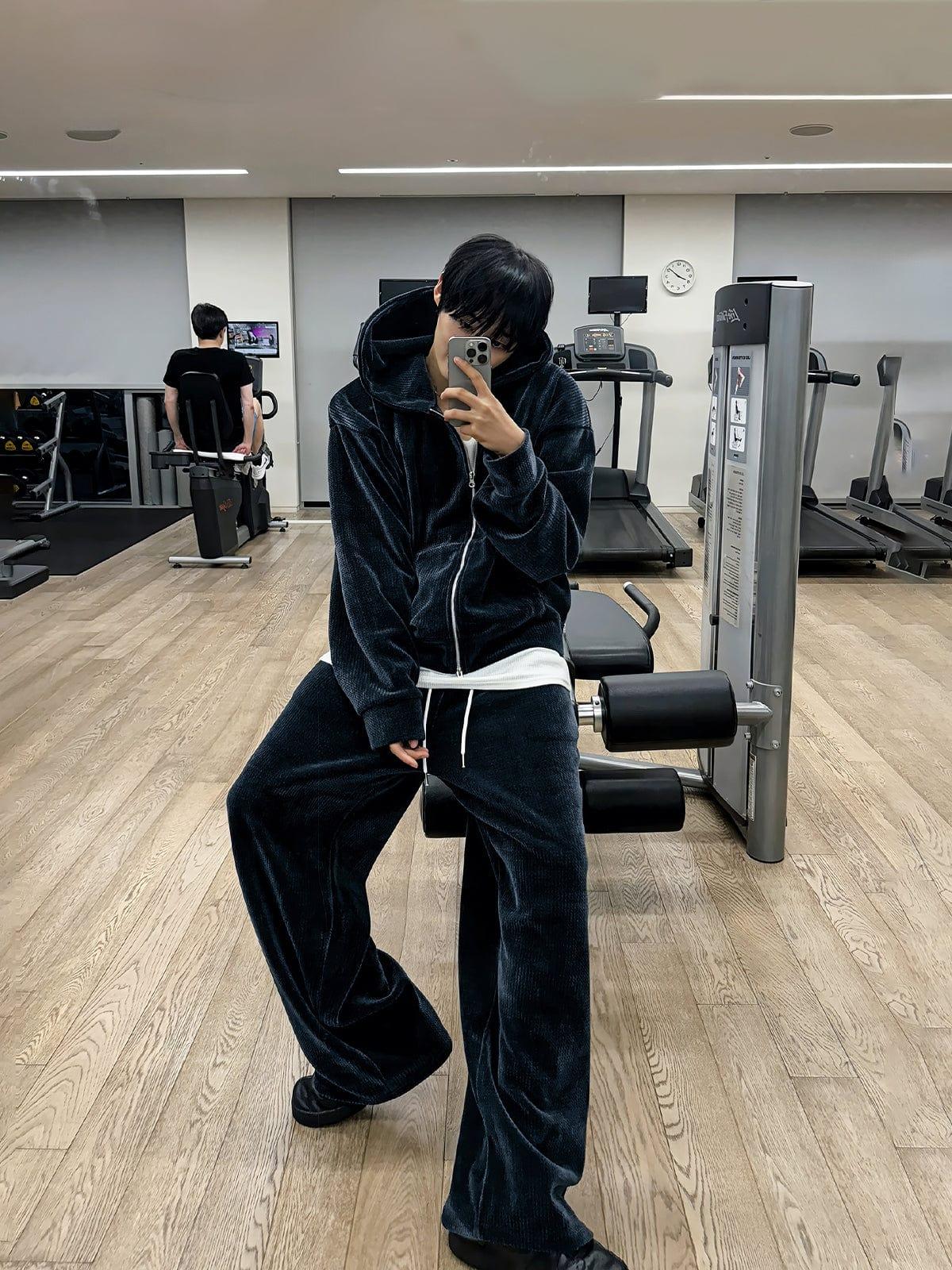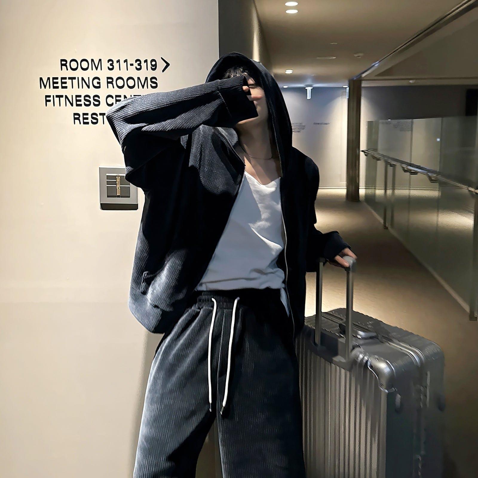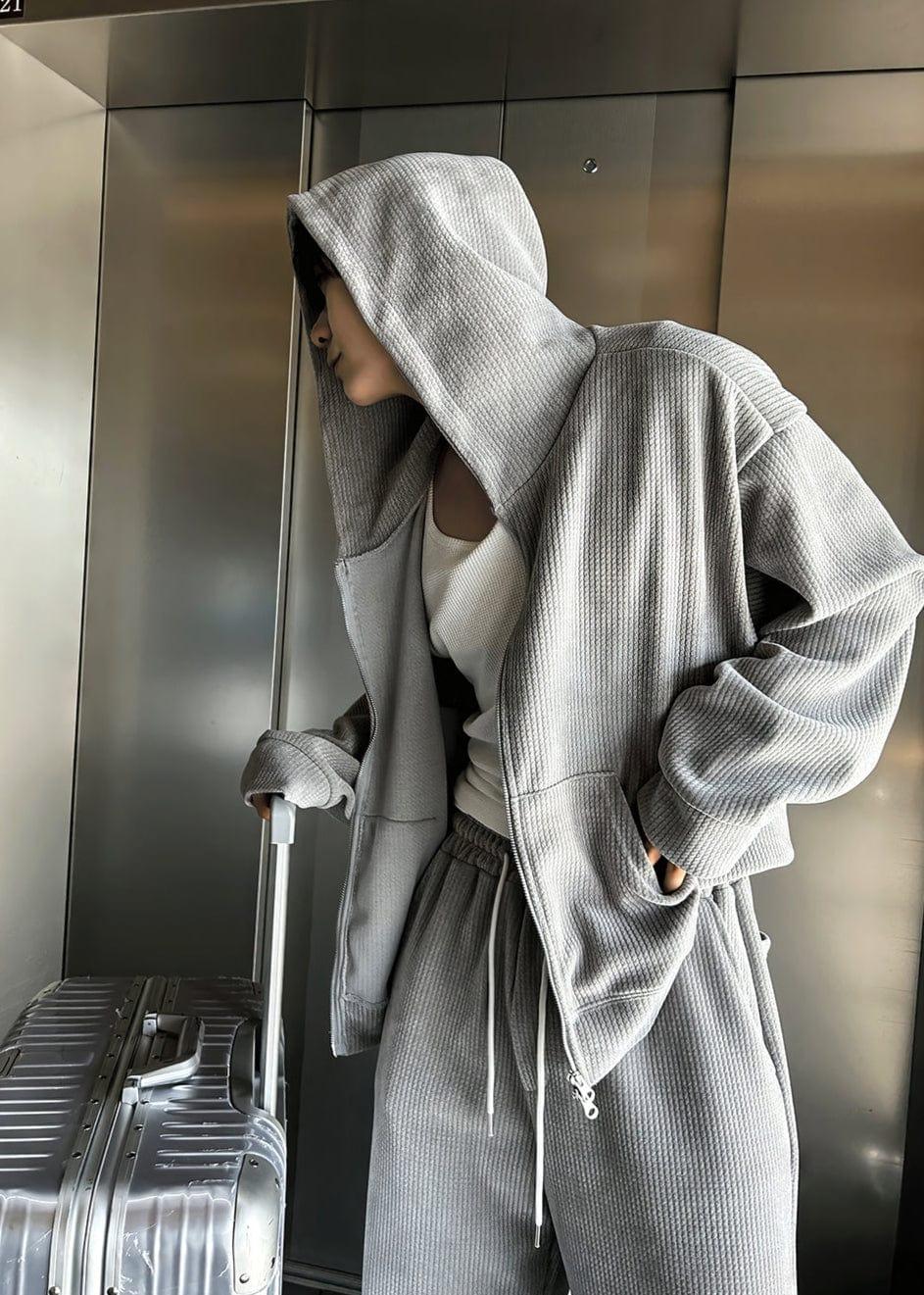 - sold separately- WAFFLE KNIT- Zip-up (top)- Hooded (top)- Wide straight fit (bottom)