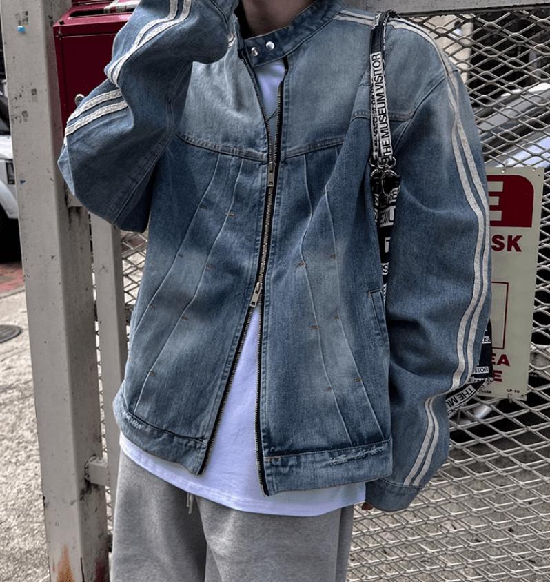 - STRIPED BLUE- Biker collar- DENIM- Zip-up