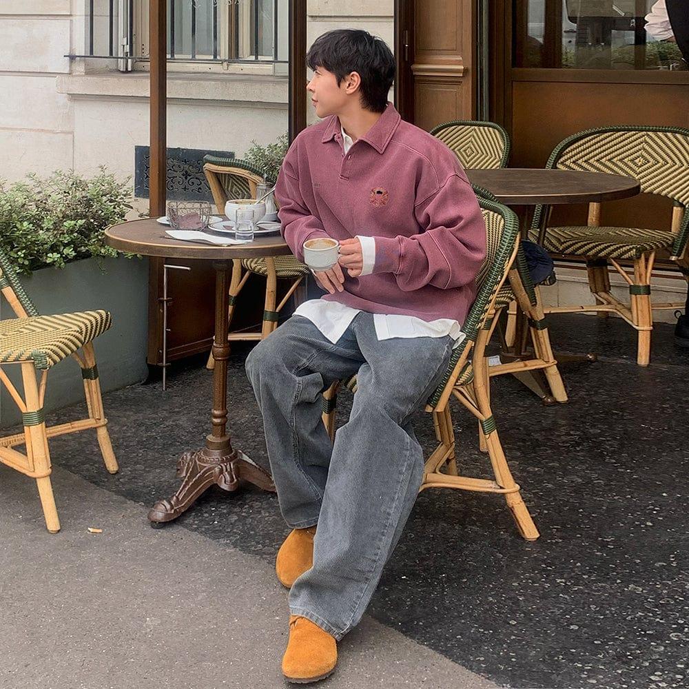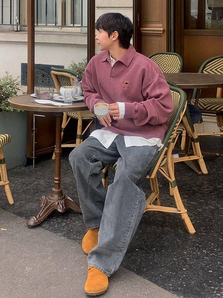 - RUBY RED- Polo collar- Pullover- Chest embroidered