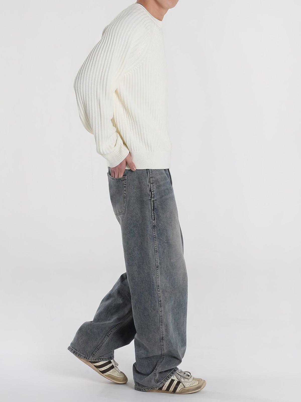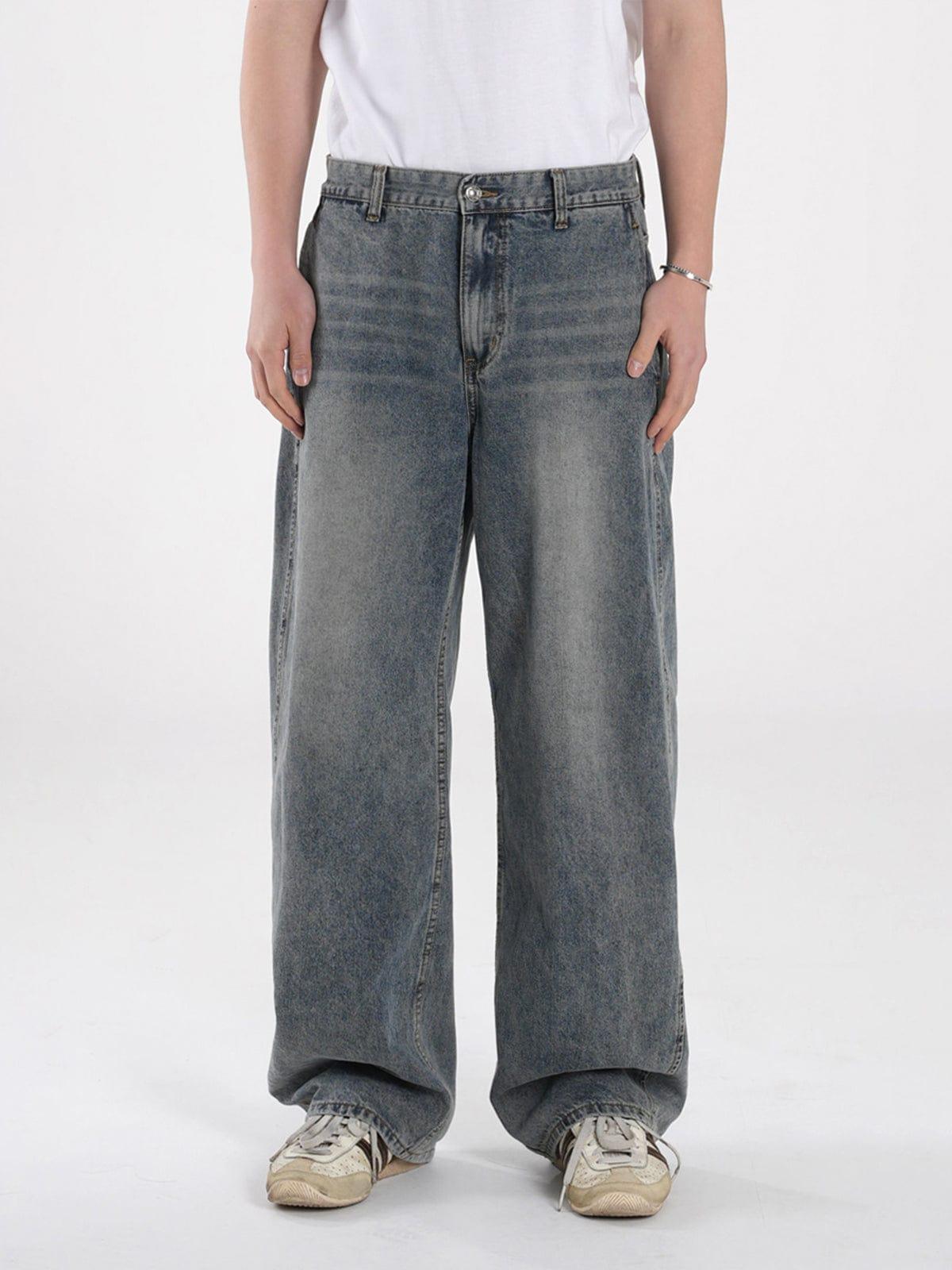 - WASHED BLUE- DENIM- Relax straight fit- Whisker washed