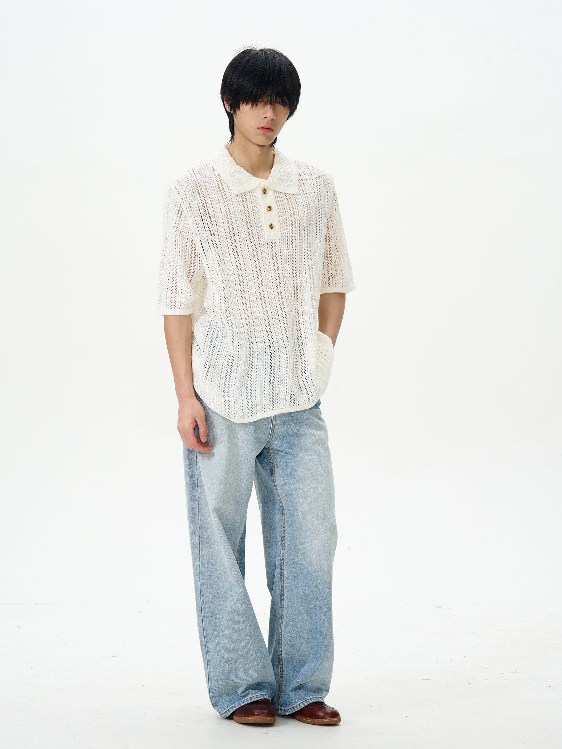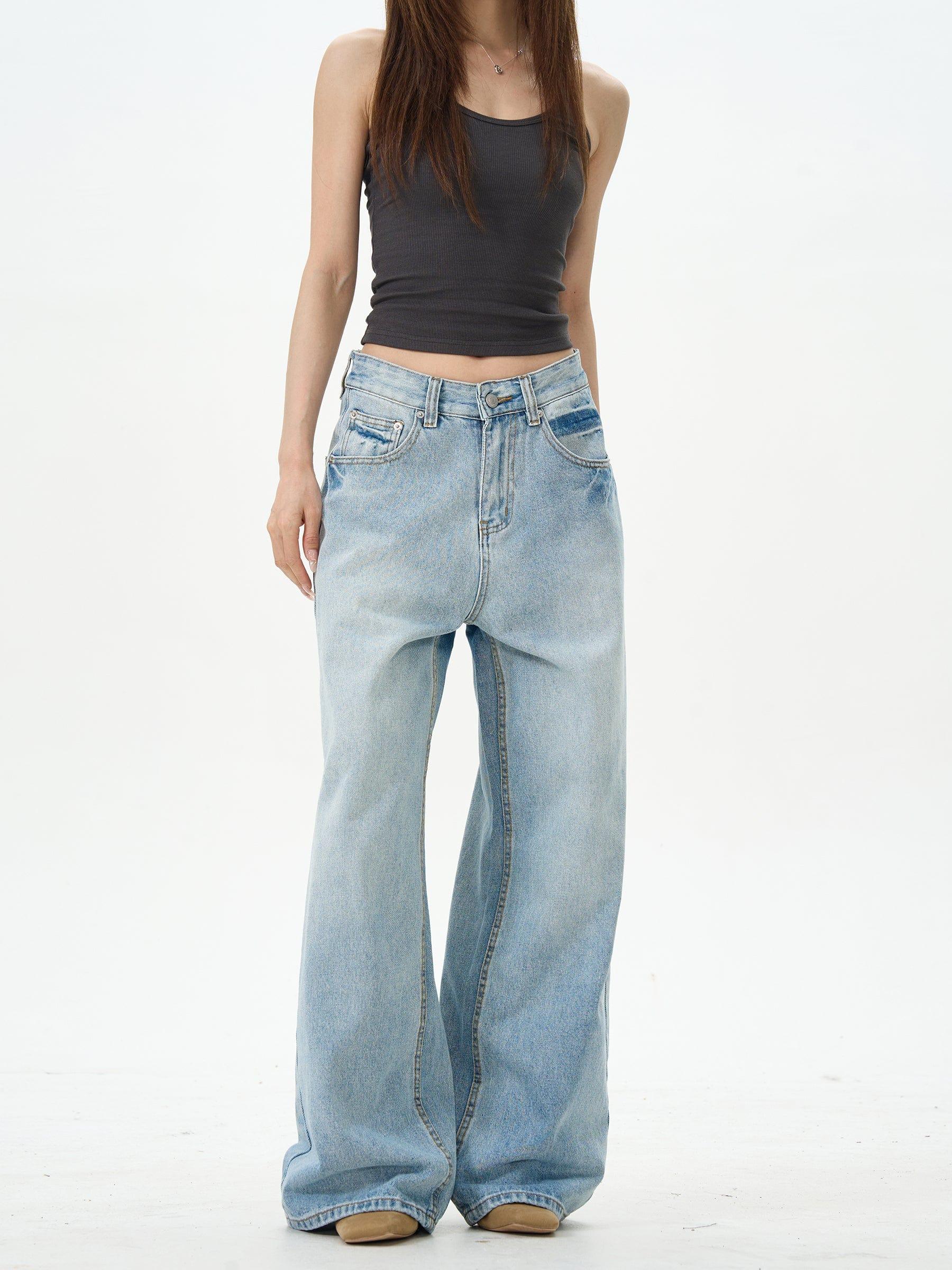 RT No. 12692 DISTRESSED WASHED DENIM STRAIGHT JEANS Unisex
