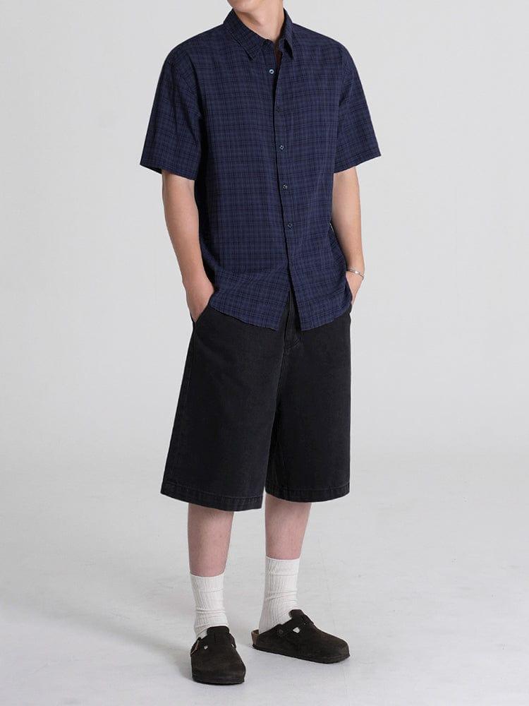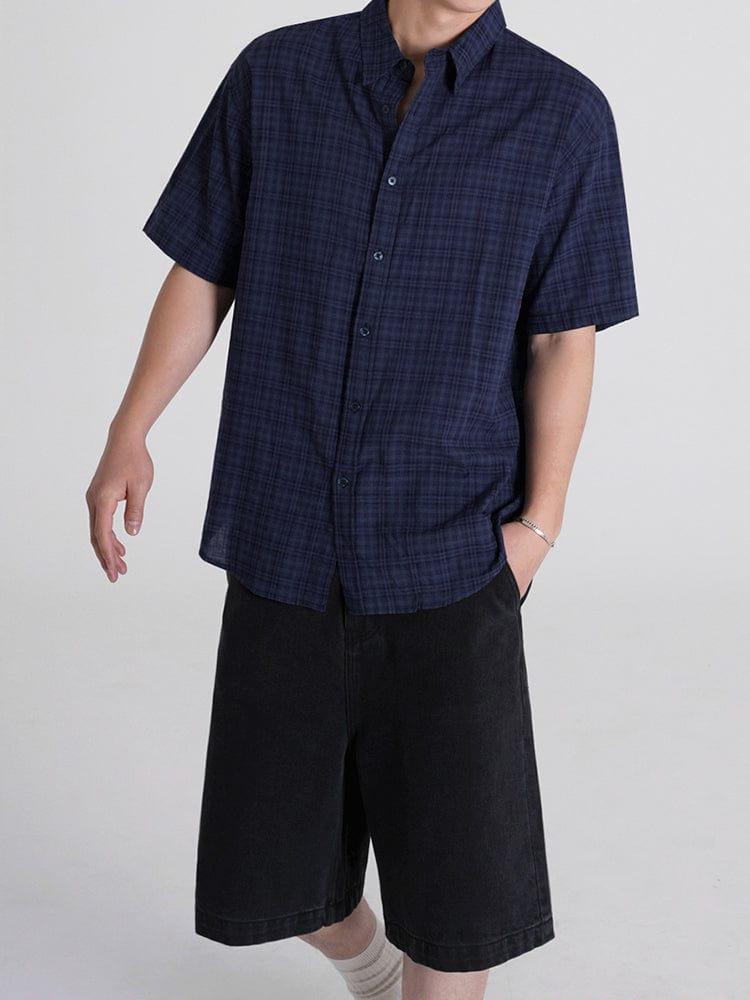- BLUE PLAID- Short sleeve- Button-up- Collar