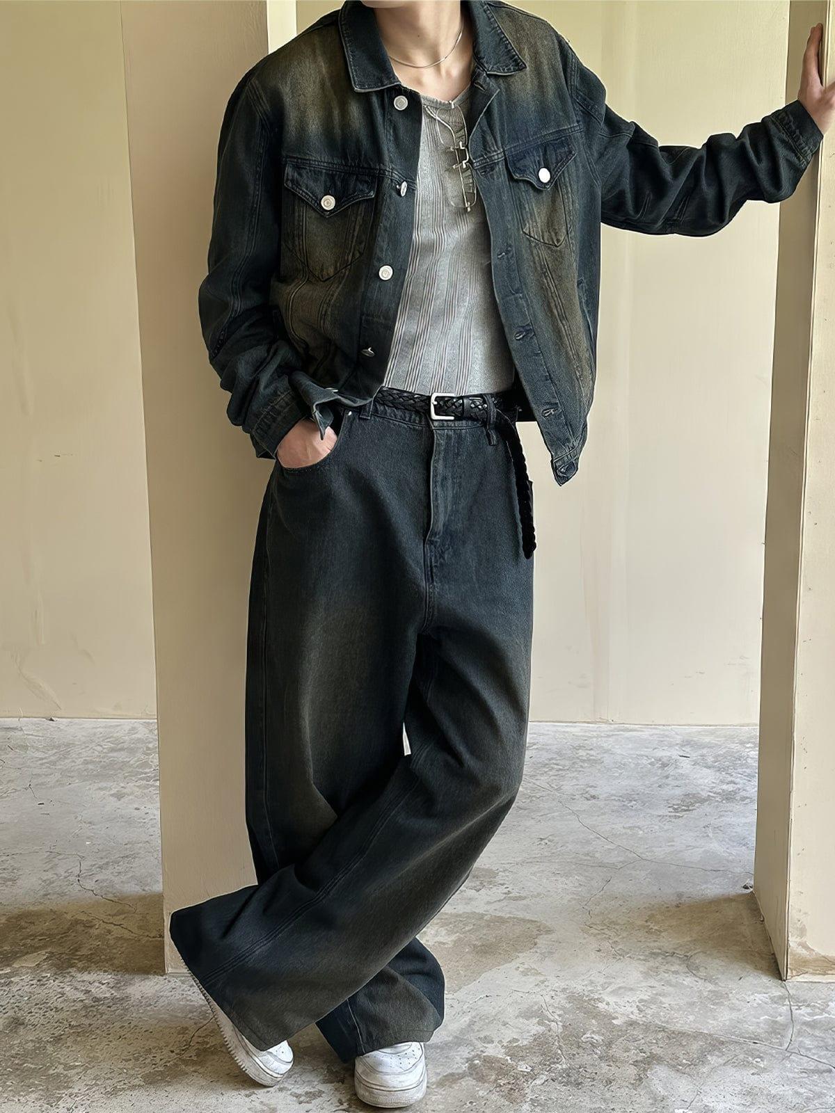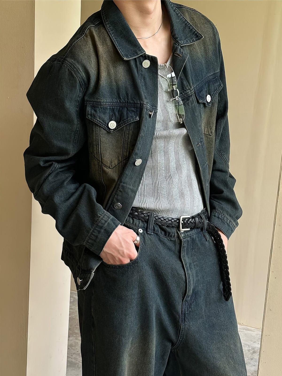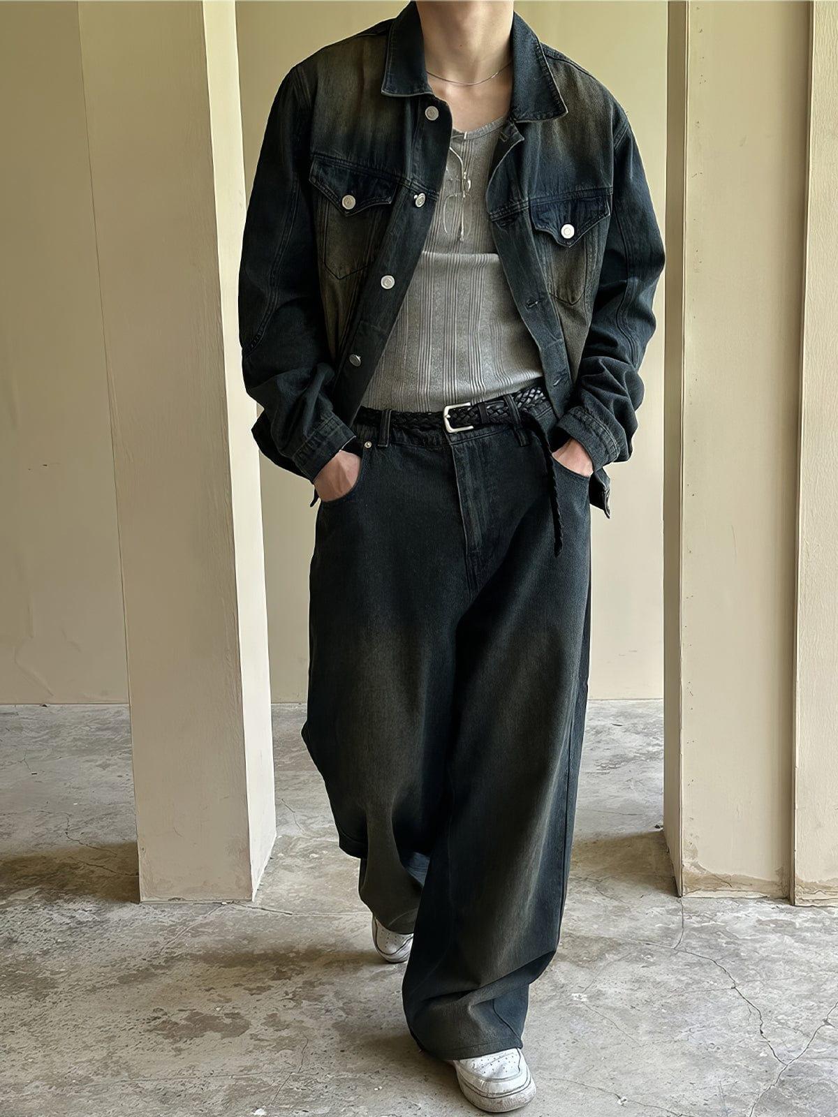 - WASHED - NAVY BLUE- DENIM- Chest pocket- Button-up