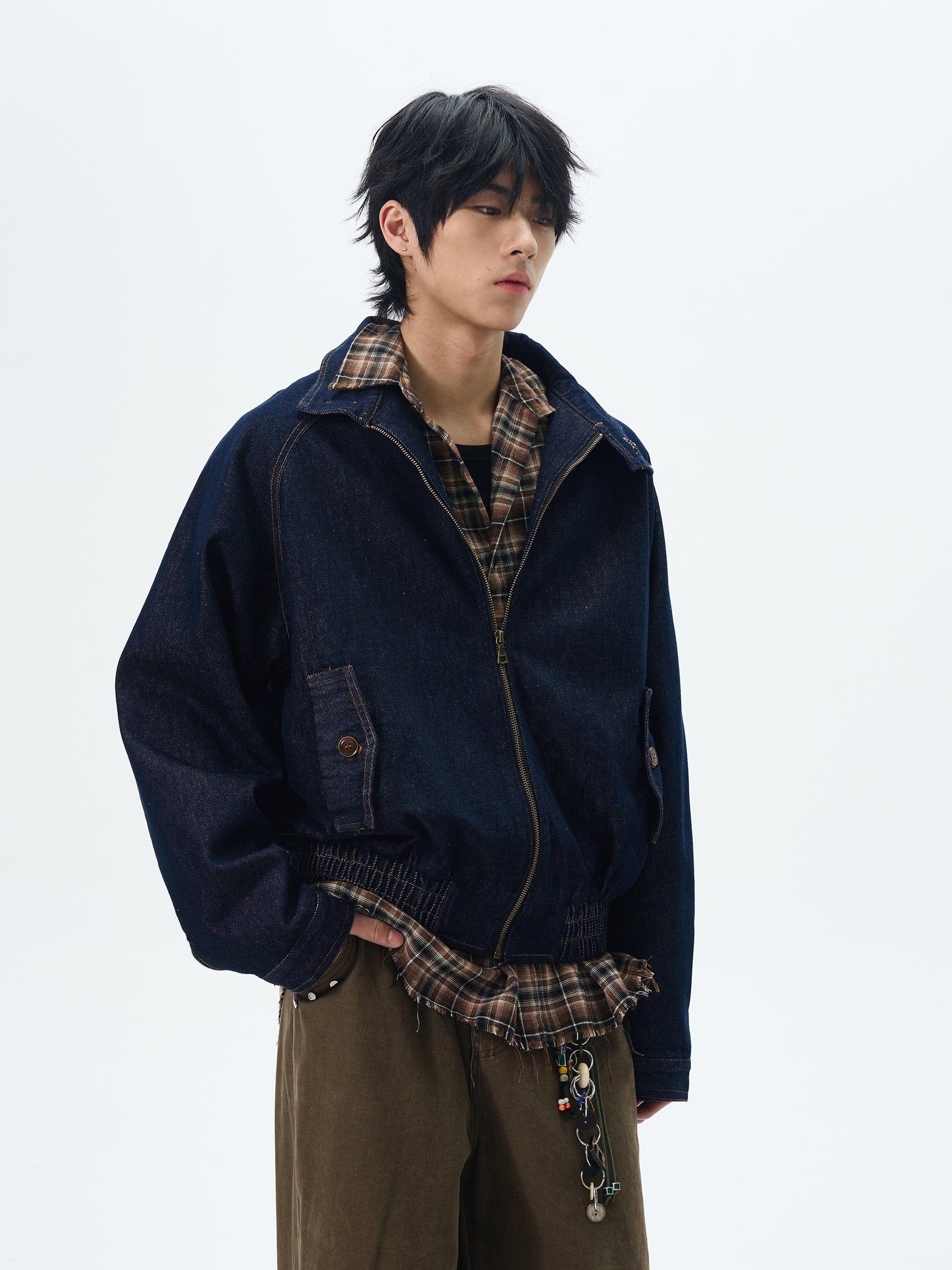 RT No. 12634 NAVY BLUE STAND COLLAR DENIM JK