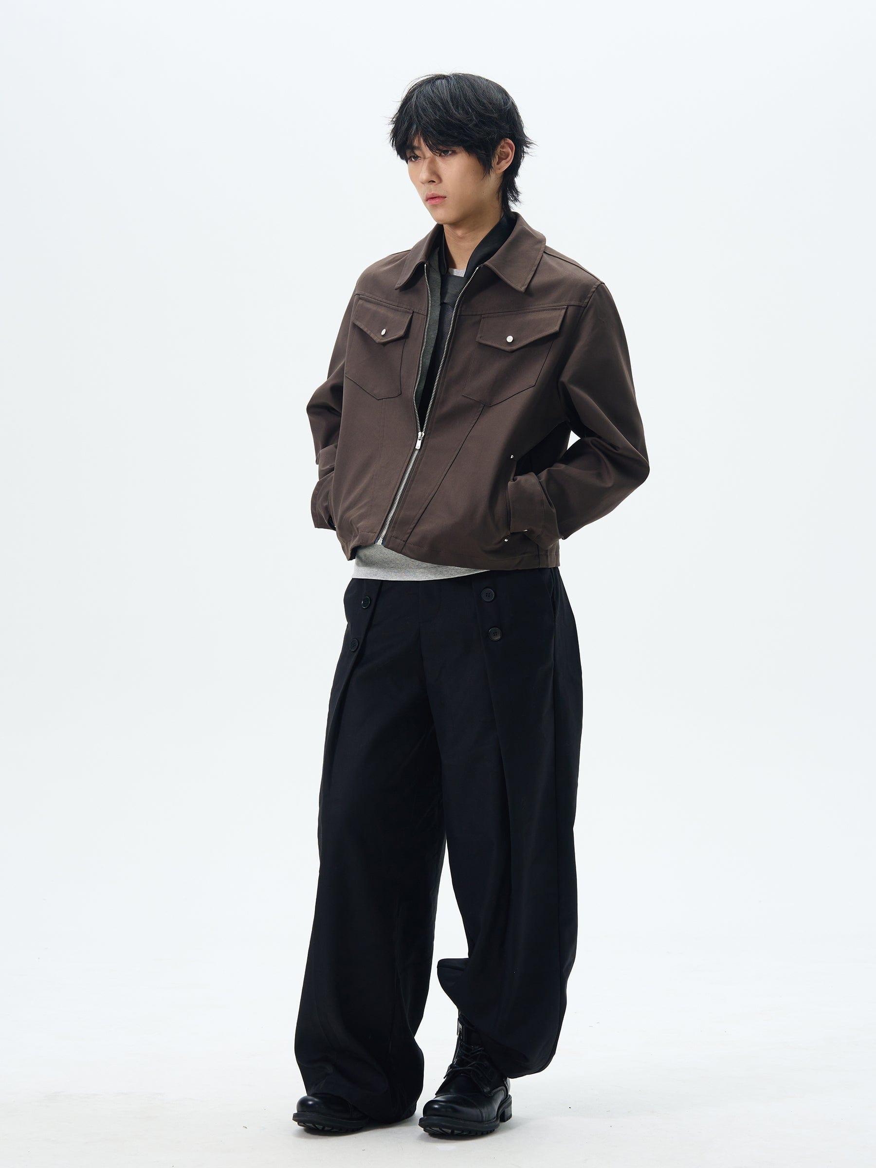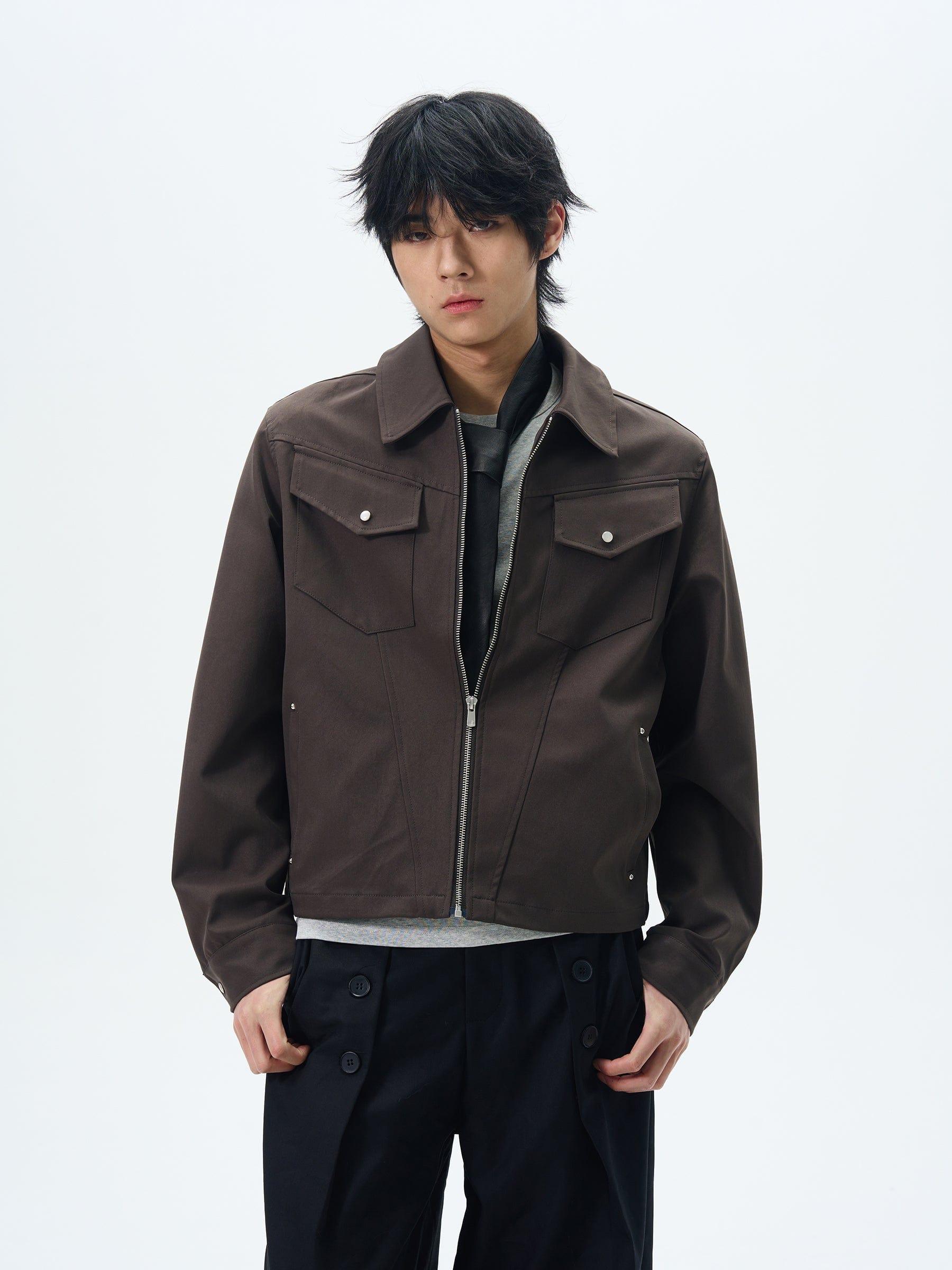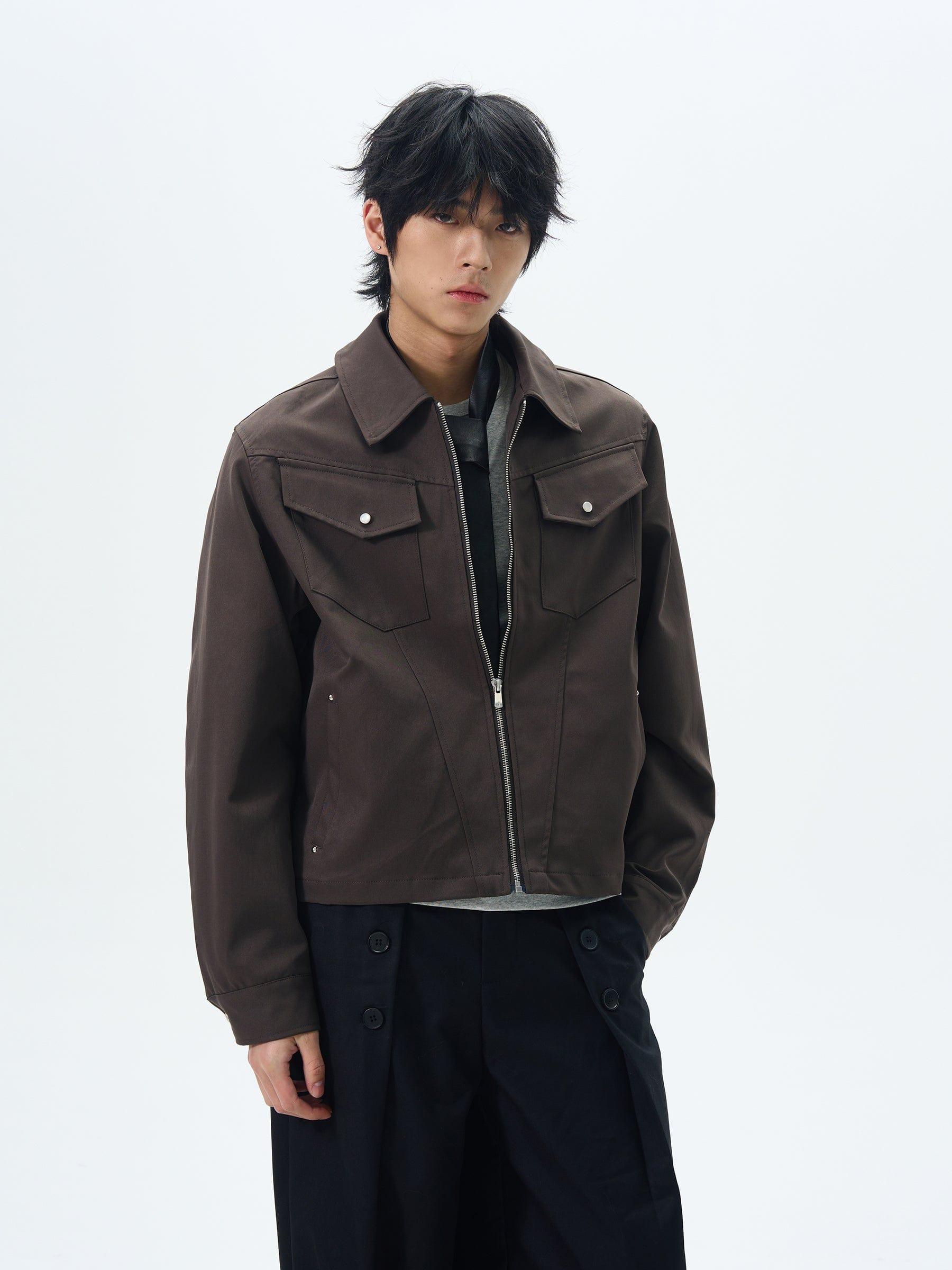 Model is 5ft 10''(178cm) tall, 145 lbs(66kg) weight and wearing a size L168cm 59kg wearing a size M - BROWN- Zip-up- Chest-pocket- Collar