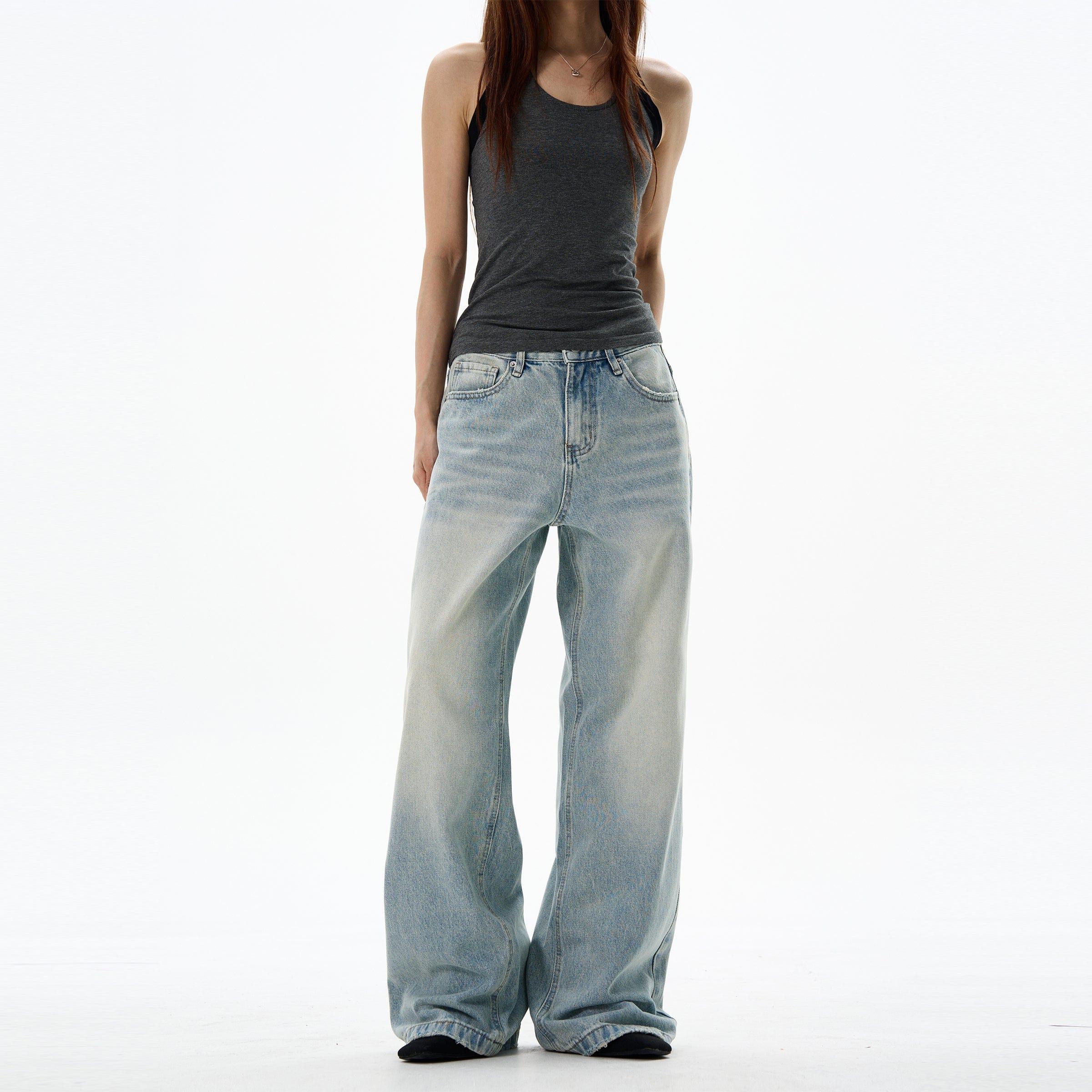 RT No. 12692 DISTRESSED WASHED DENIM STRAIGHT JEANS Unisex