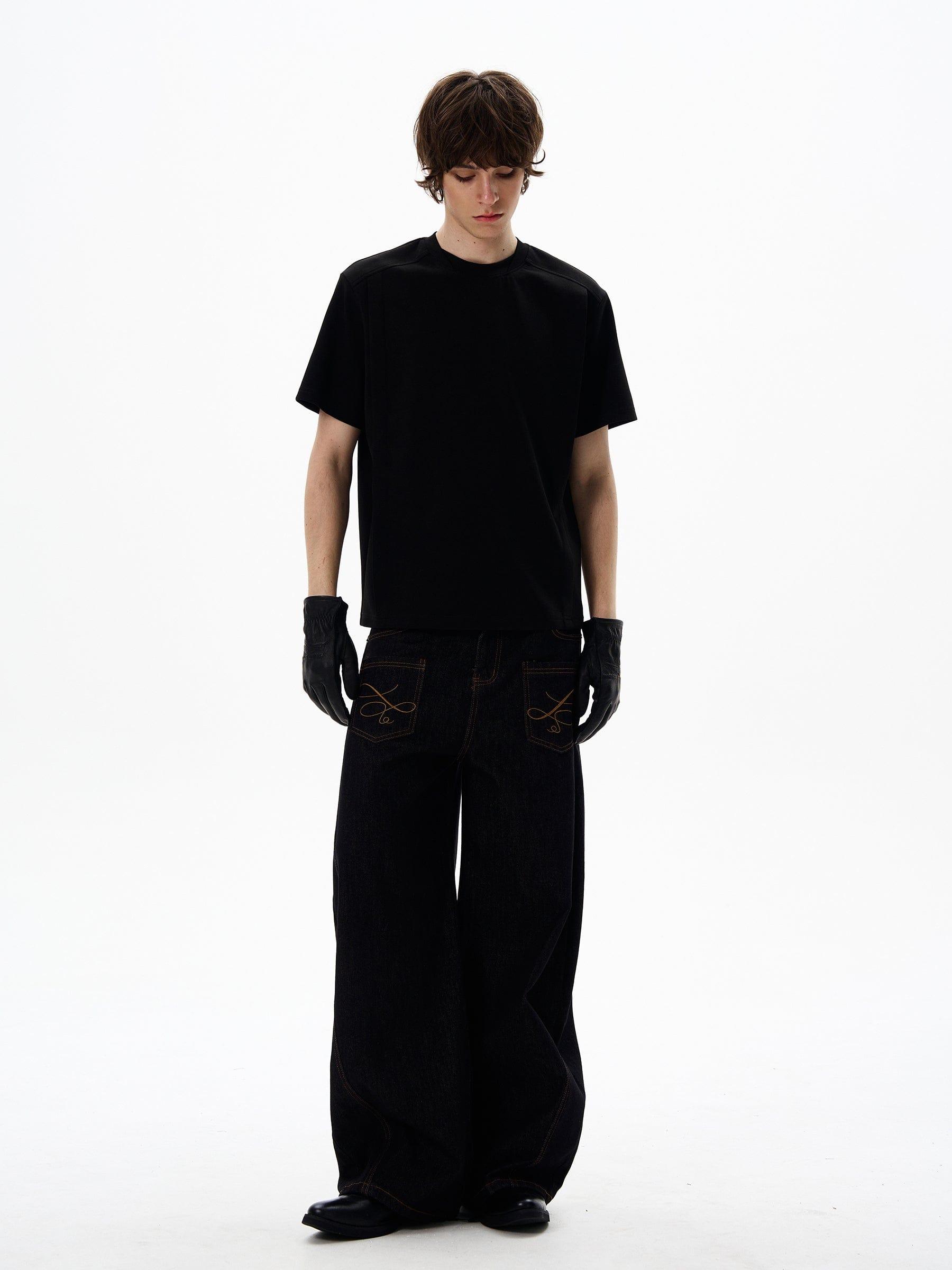 RT No. 12684 BLACK MACHETE DENIM STRAIGHT JEANS Unisex