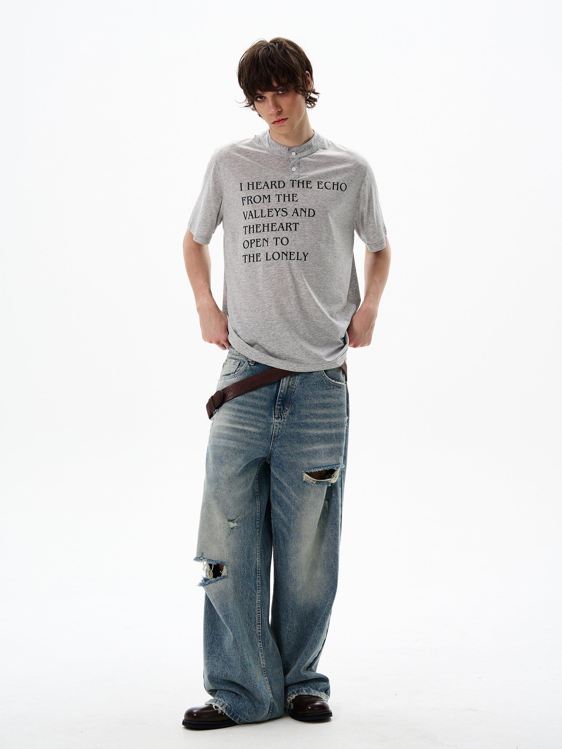 Model is 5ft 10''(178cm) tall, 145 lbs(66kg) weight and wearing a size L168cm 59kg wearing a size M - DISTRESSED- Washed- Wide straight fit- DENIM- UNISEX