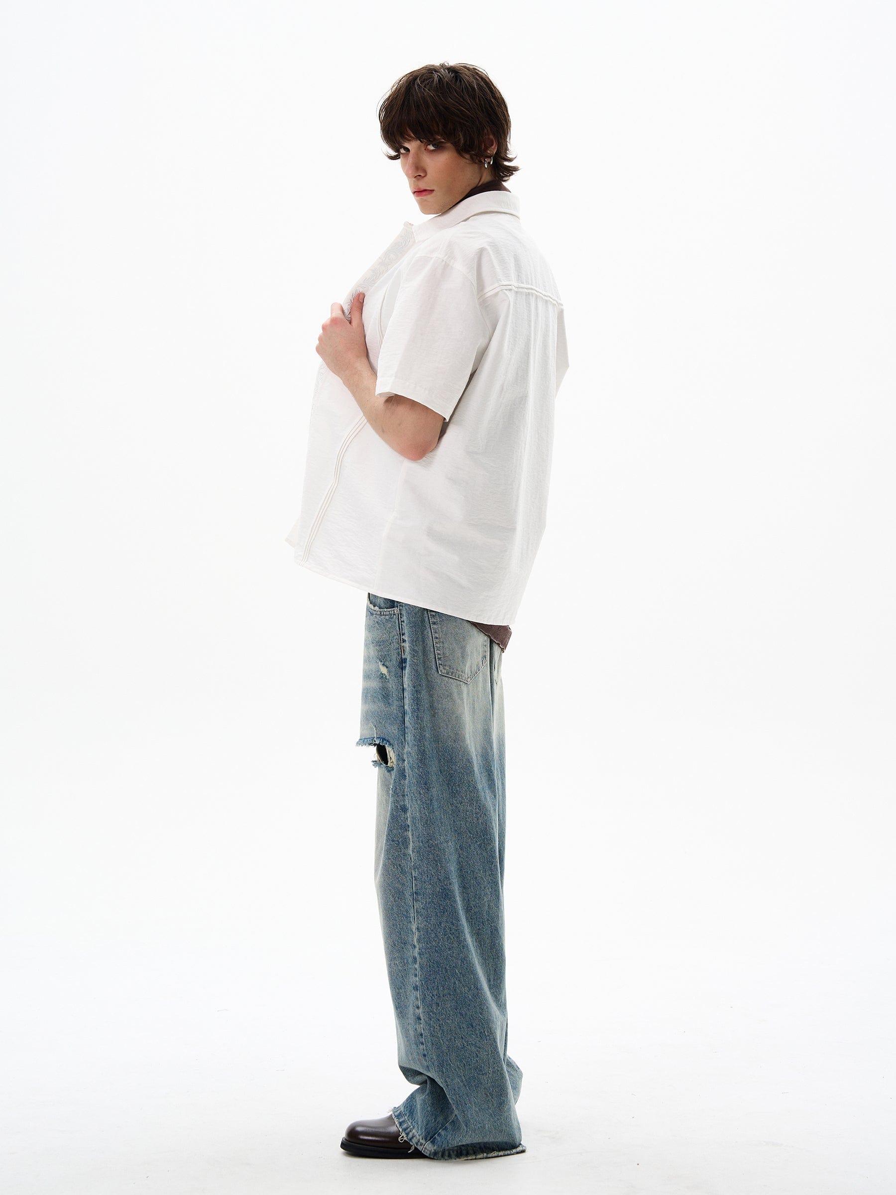 Model is 5ft 10''(178cm) tall, 145 lbs(66kg) weight and wearing a size L168cm 59kg wearing a size M - Button up - Collar- Loose fit- Short sleeve - 2 colors