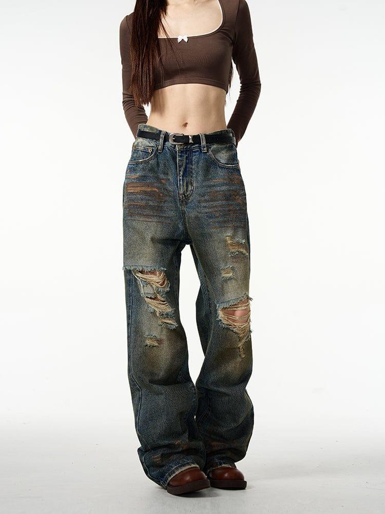 RT No. 12705 DISTRESSED DARK BLUE DENIM JEANS