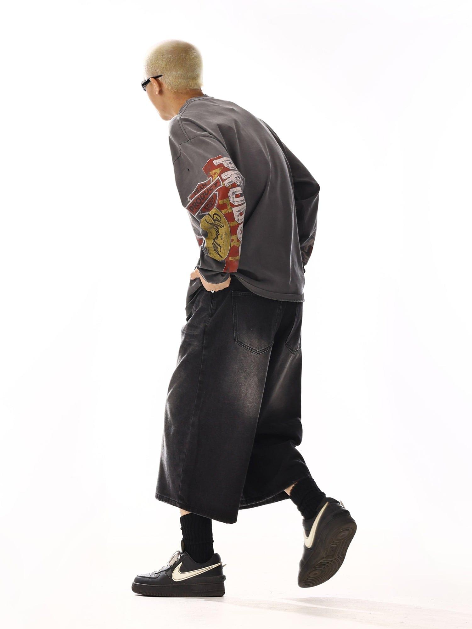 RT No. 7002 WASHED BLACK WIDE STRAIGHT DENIM JEANS